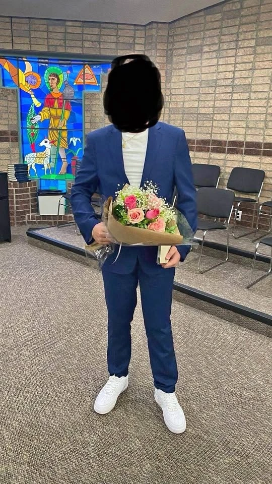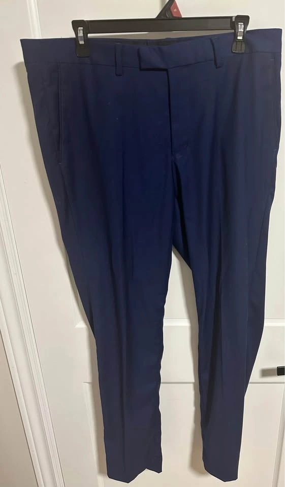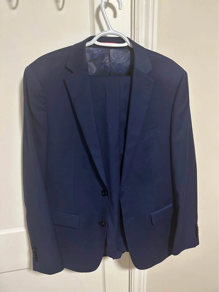 Selling a classic navy blue suit set, worn only once for a graduation ceremony. It is in brand-new condition with no stains or wear. The slim, modern fit is perfect for Grade 8 graduates or high schoolers.