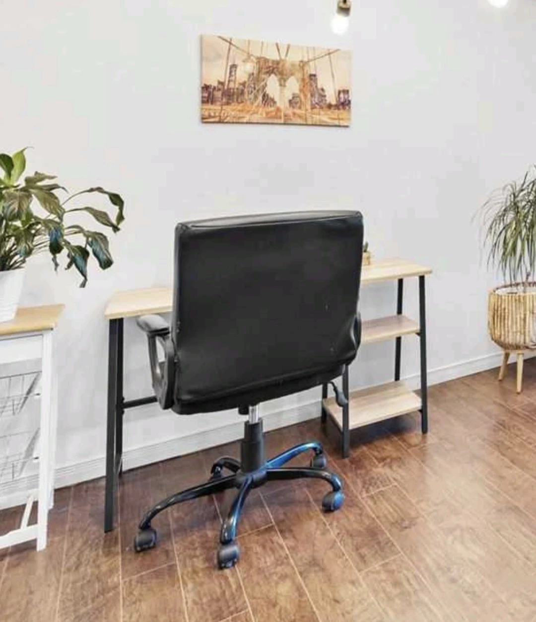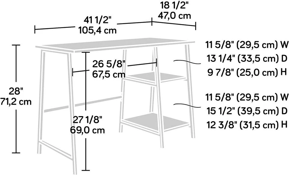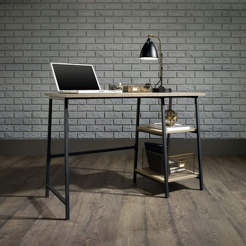 Incorporate an industrial vibe into your office with this desk from the North Avenue collection. Its spacious work area provides you with room for your laptop and all other office essentials. It also features two lower shelves for storage and display. Constructed with a durable, black metal frame and finished on all surfaces in Characters Oak, this clean-cut desk will have you working in style.