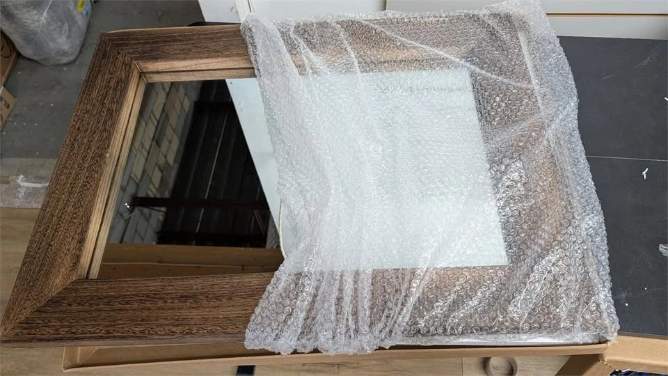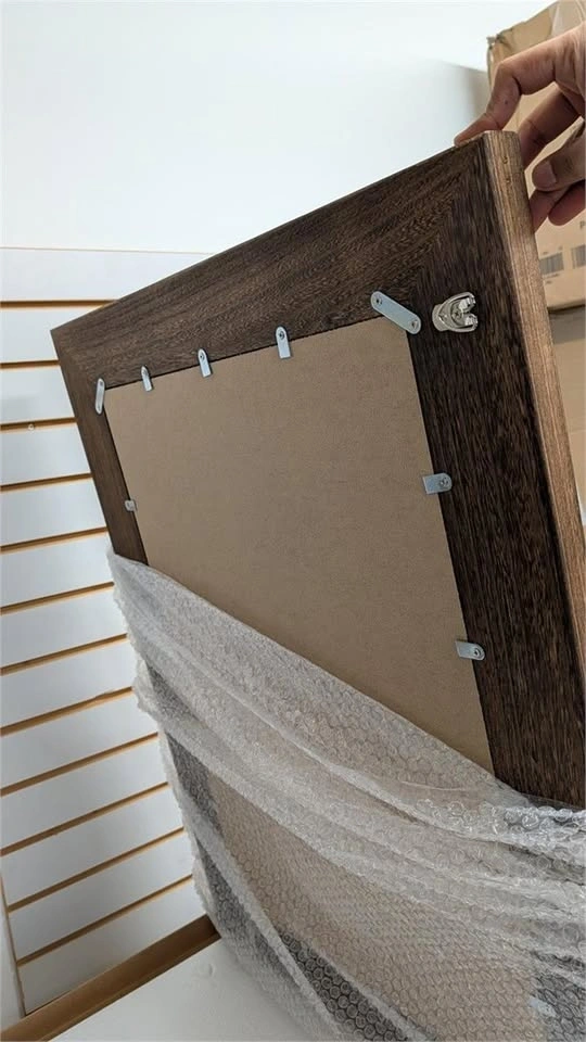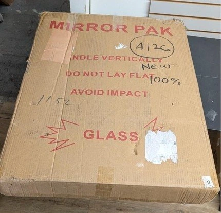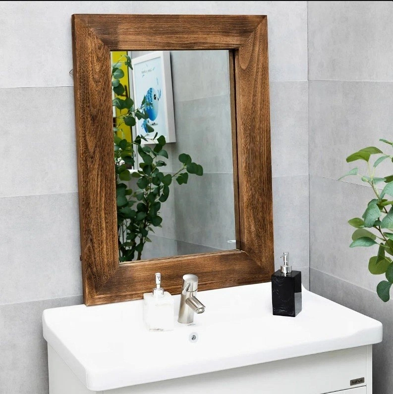 Brand new farmhouse-style wall mirror, perfect for your bathroom, entryway, or bedroom. It features a beautiful rustic solid wood frame with natural grain texture and a clean rectangular design for a modern farmhouse vibe. This mirror can be mounted vertically or horizontally and its compact size makes it ideal for condos and smaller spaces. Originally from Wayfair, this is a stylish and practical piece that will instantly upgrade any space. Condition: Brand new. Pickup: Markham.