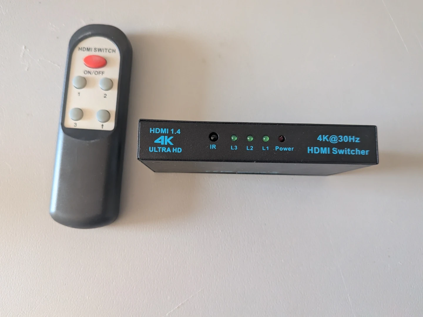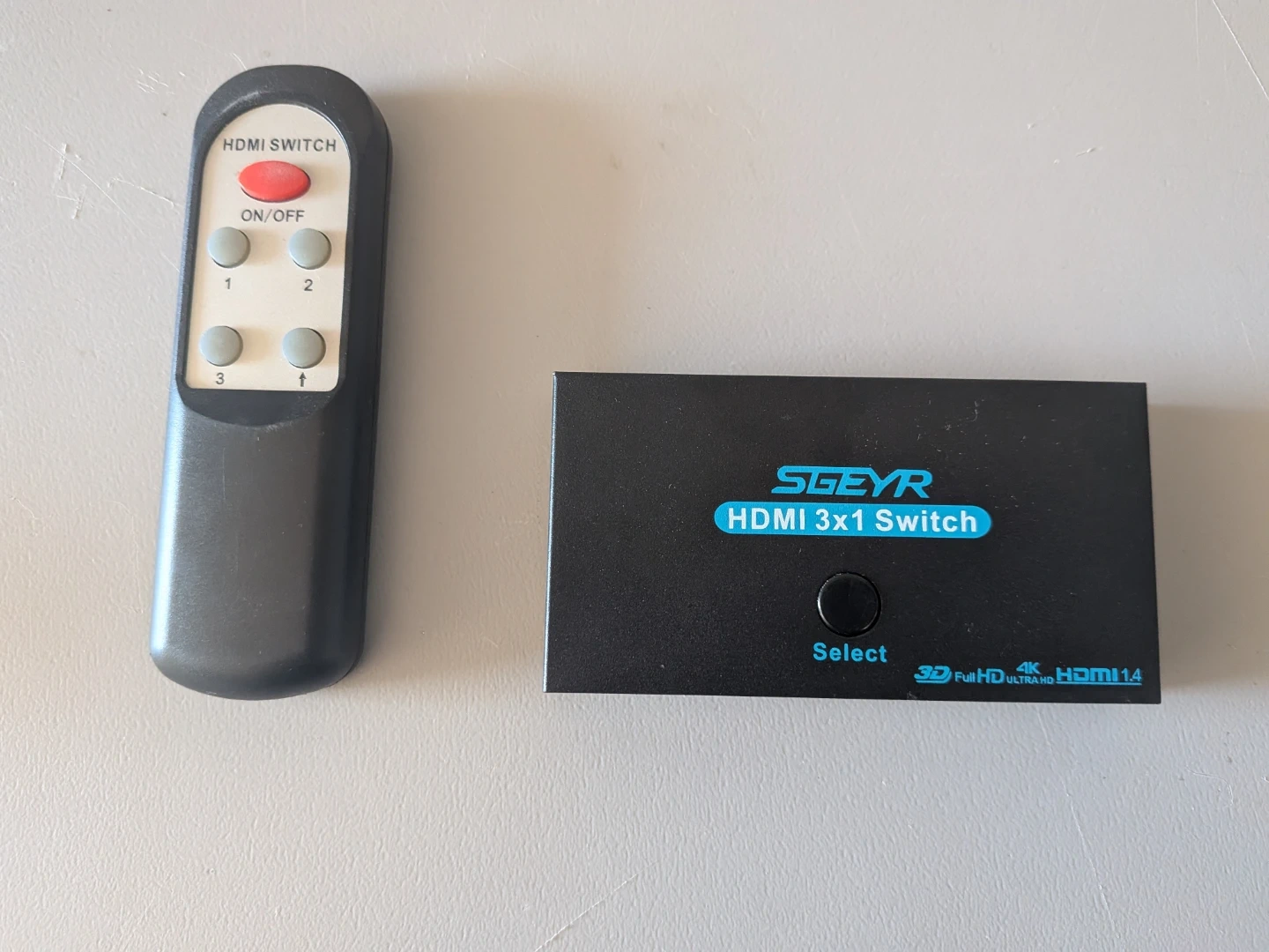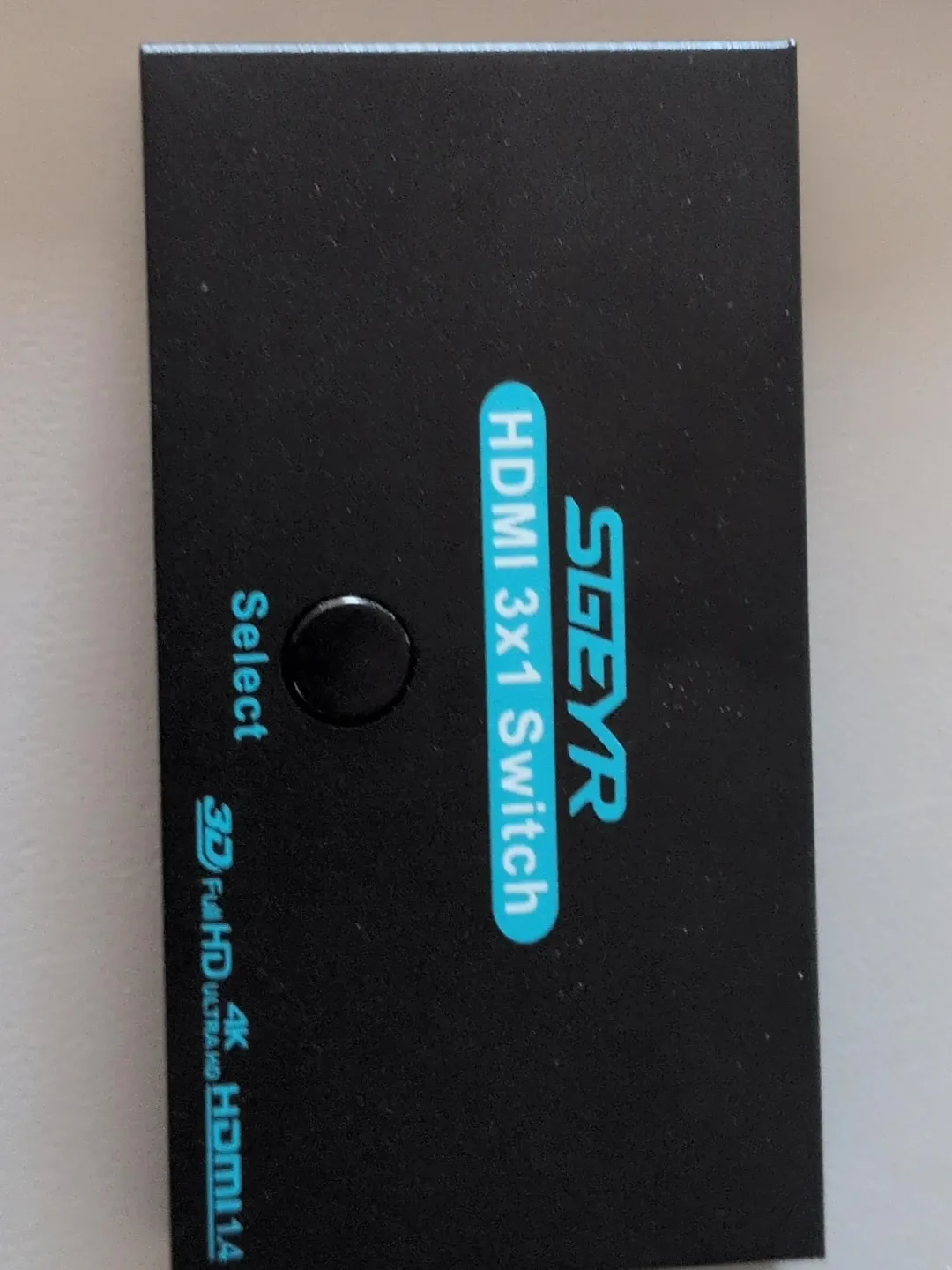 This is a Sgeyr 3x1 HDMI switcher. It supports 4K Ultra HD resolution at 30Hz and HDMI 1.4. It comes with a remote control for easy switching. It's useful for connecting multiple HDMI devices to one display.