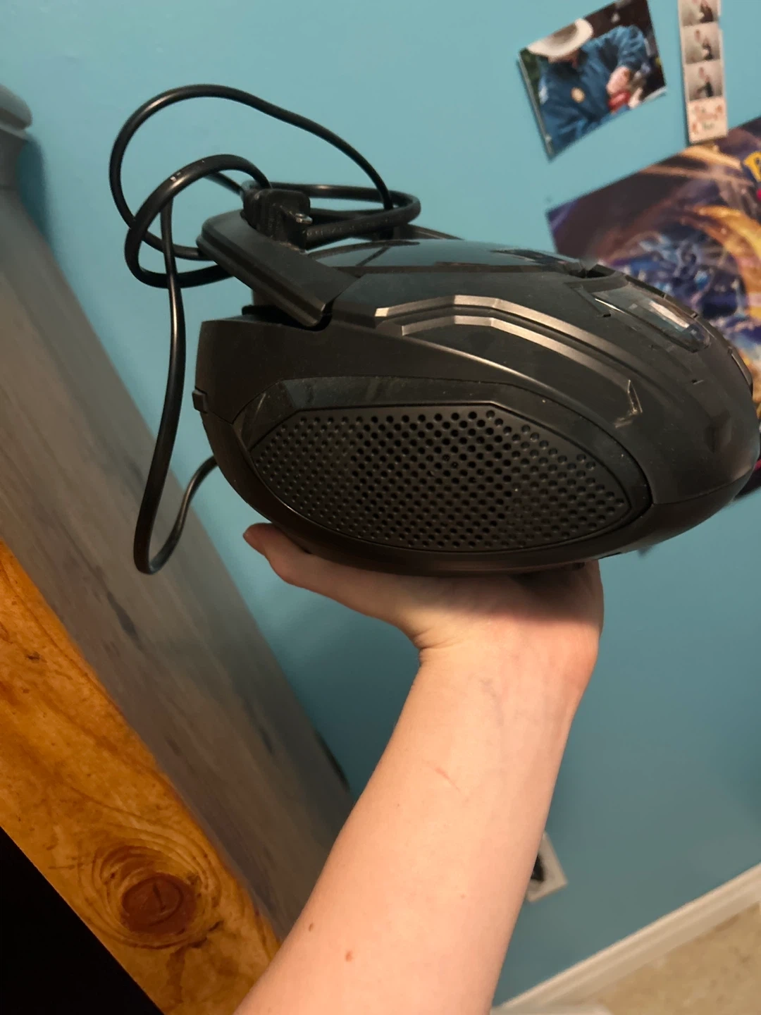 This is a Proscan portable CD player with a built-in radio. It's black and comes with the power cord. Works great for listening to music. Must go send offers!!!!!!