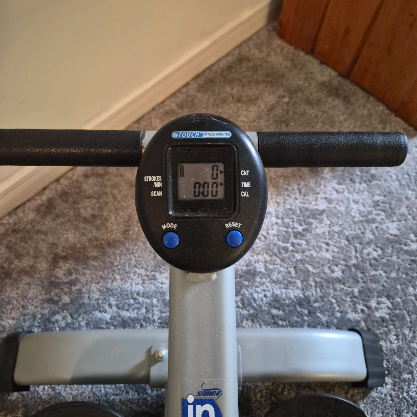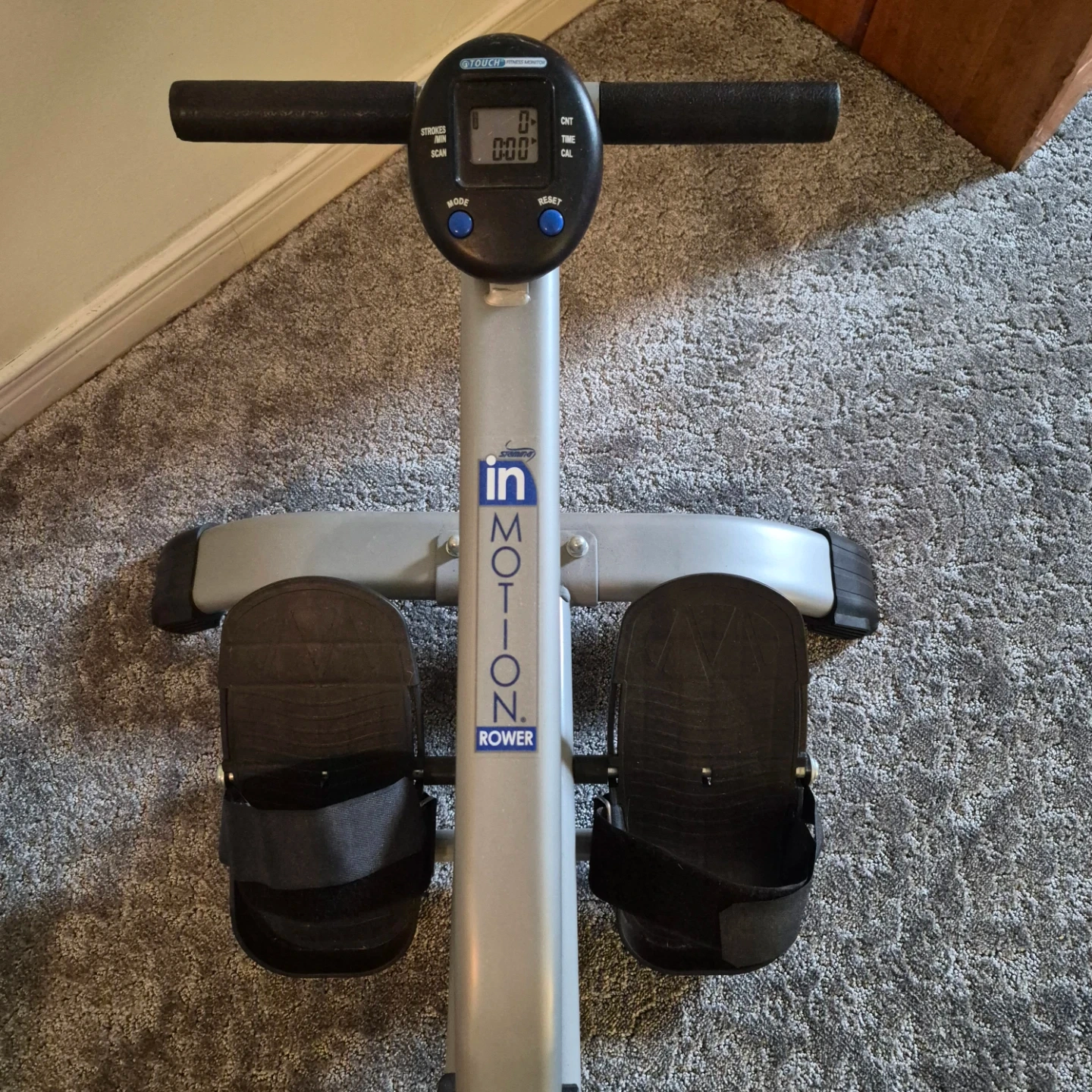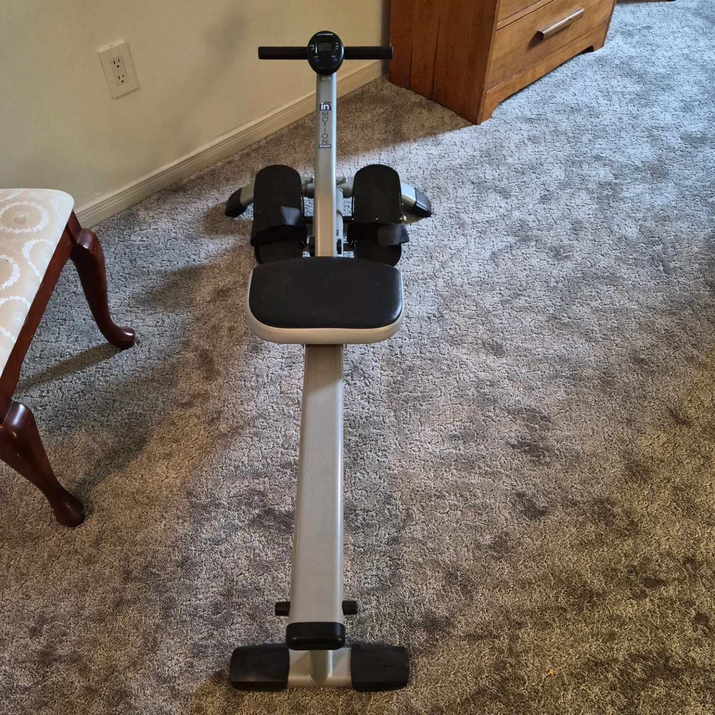 In Motion Rower with a fitness monitor. It tracks strokes, time, and calories. Great for a home workout! Almost brand new.