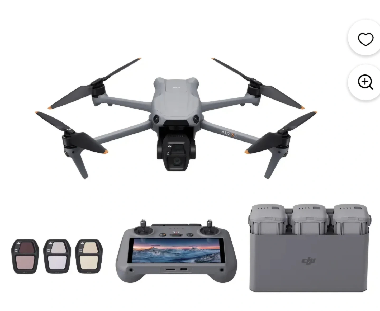 Designed for travel photography, the DJI Air 3S is a dual-camera drone that integrates a suite of advanced technologies. It features a 1-inch CMOS primary camera and a 70mm medium telephoto camera, each offering up to 14 stops of dynamic range—capturing landscapes, portraits, and more in stunning detail. Both cameras support the new Free Panorama feature, allowing flexible shooting-range selections. Additional highlights include nightscape obstacle sensing and next-generation Smart RTH for enhanced safety during nighttime photography. In every way, the DJI Air 3S is built to elevate every aerial moment.