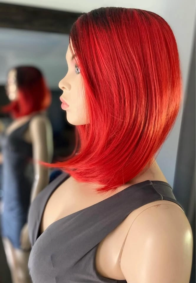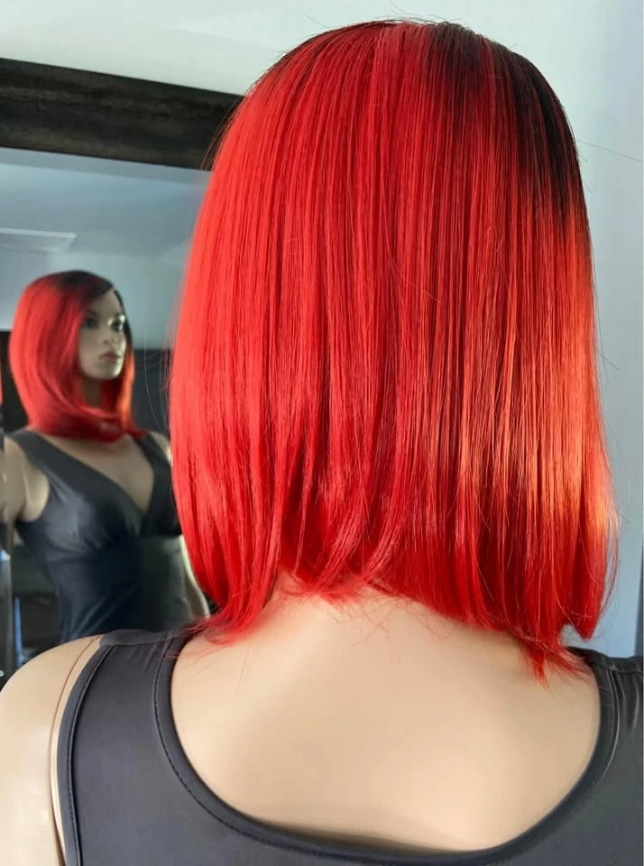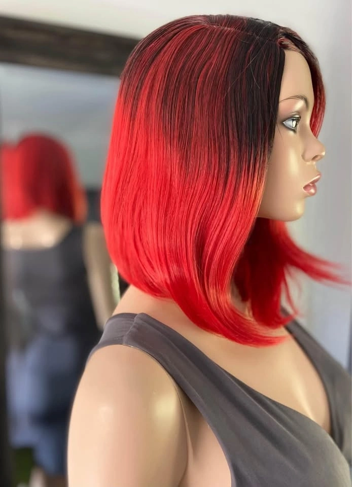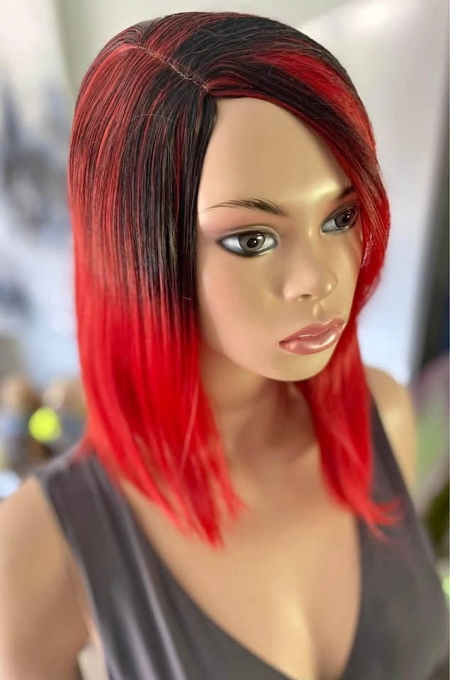 NWOT Bright Red Black Ombré Short Asymmetrical Synthetic Wig