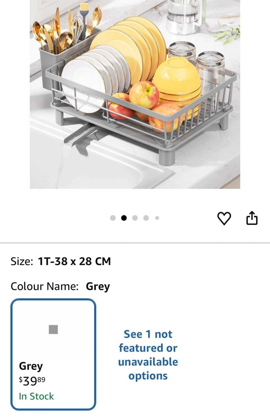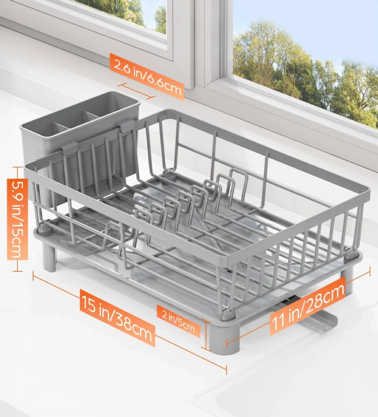 $25 Grey metal/plastic dish drying rack with swivel drainage spout.