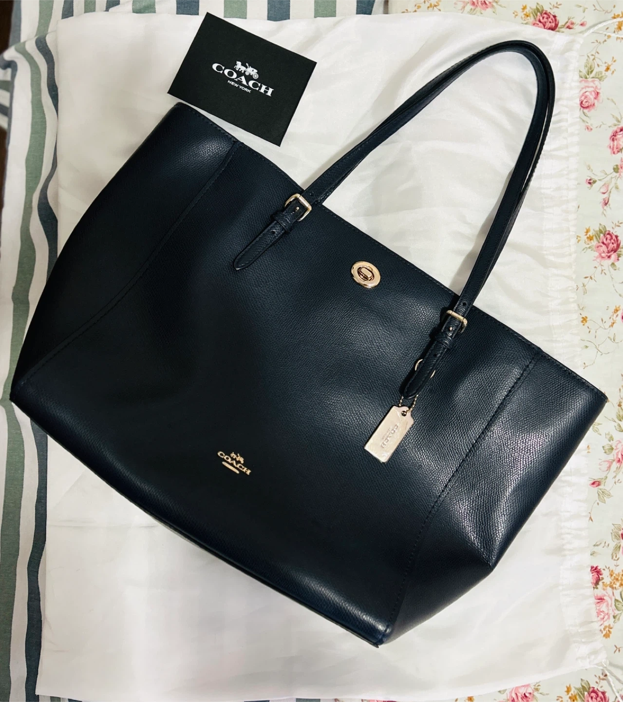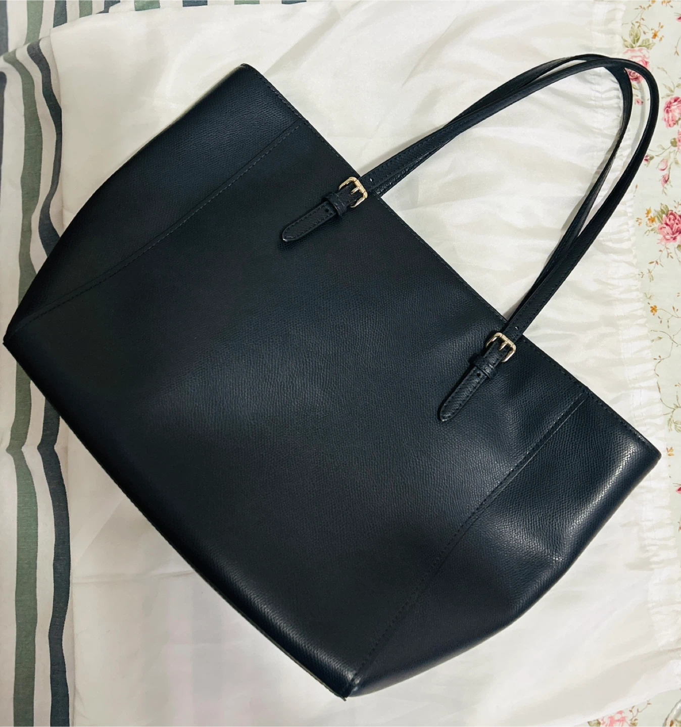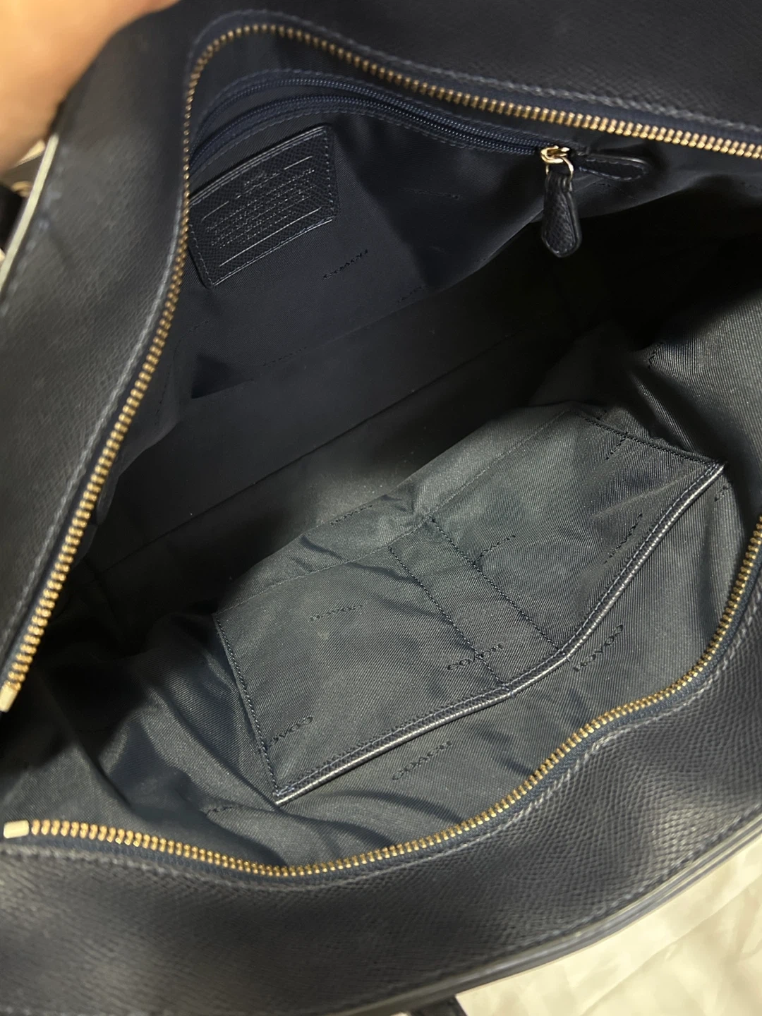 Selling a gently used Coach leather tote bag in dark navy colour. It's in great condition, no scratch or anything, and perfect for everyday use! The bag features a spacious interior and classic design.