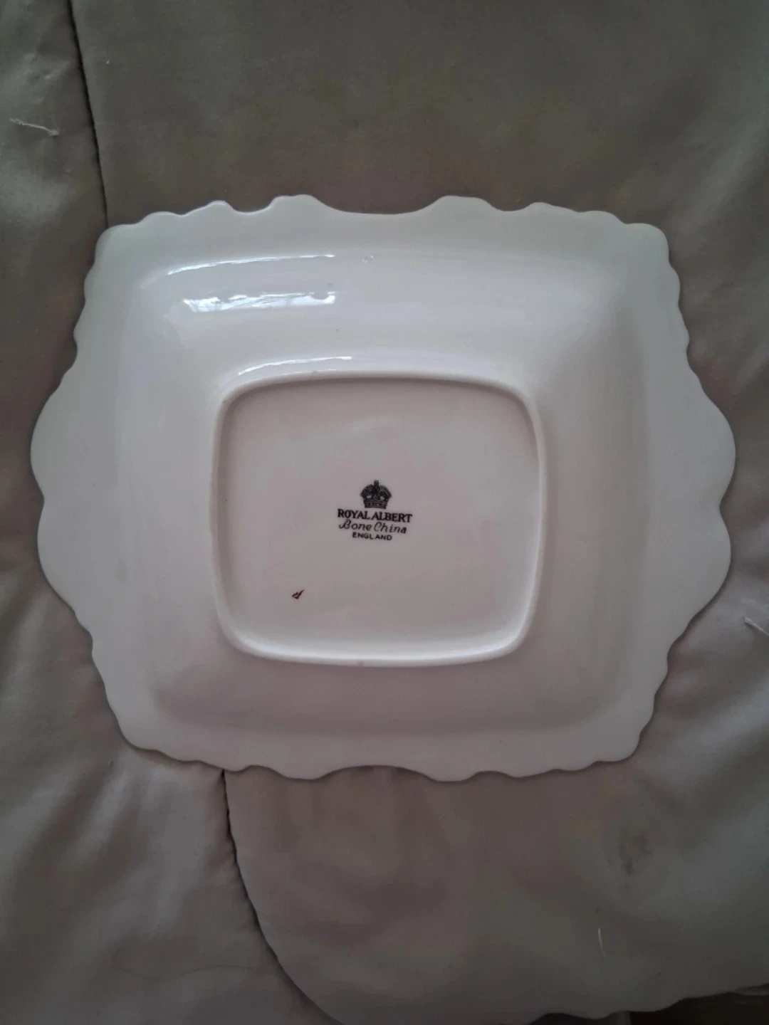 A unique gift for someone special or yourself! This is a lovely classy-looking decorative piece.It is a Royal Albert dish and features a delicate rose pattern and elegant gold trim along the scalloped edges. Porcelain material.