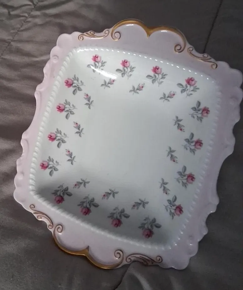 A unique gift for someone special or yourself! This is a lovely classy-looking decorative piece.It is a Royal Albert dish and features a delicate rose pattern and elegant gold trim along the scalloped edges. Porcelain material.