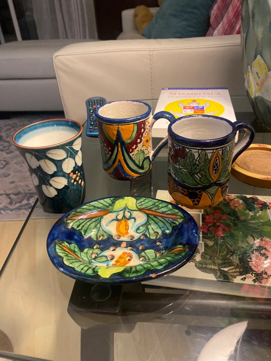 Selling some beautiful hand-painted Mexican pottery! Includes a mug, a small plate, and a cup. They're all in great condition and would look lovely in any home