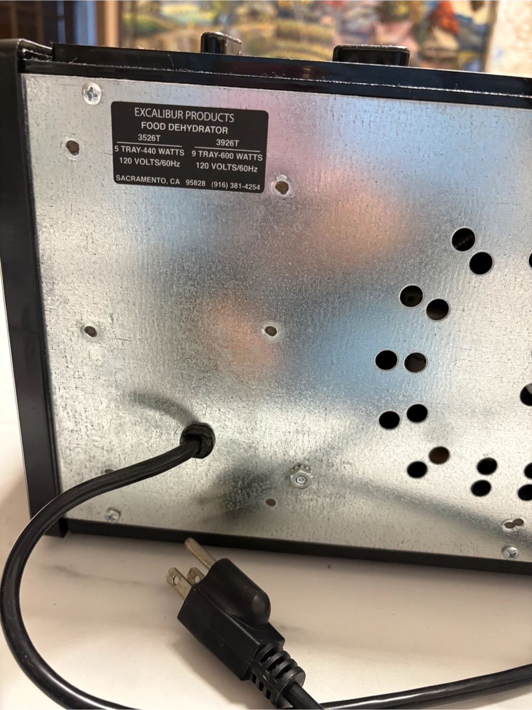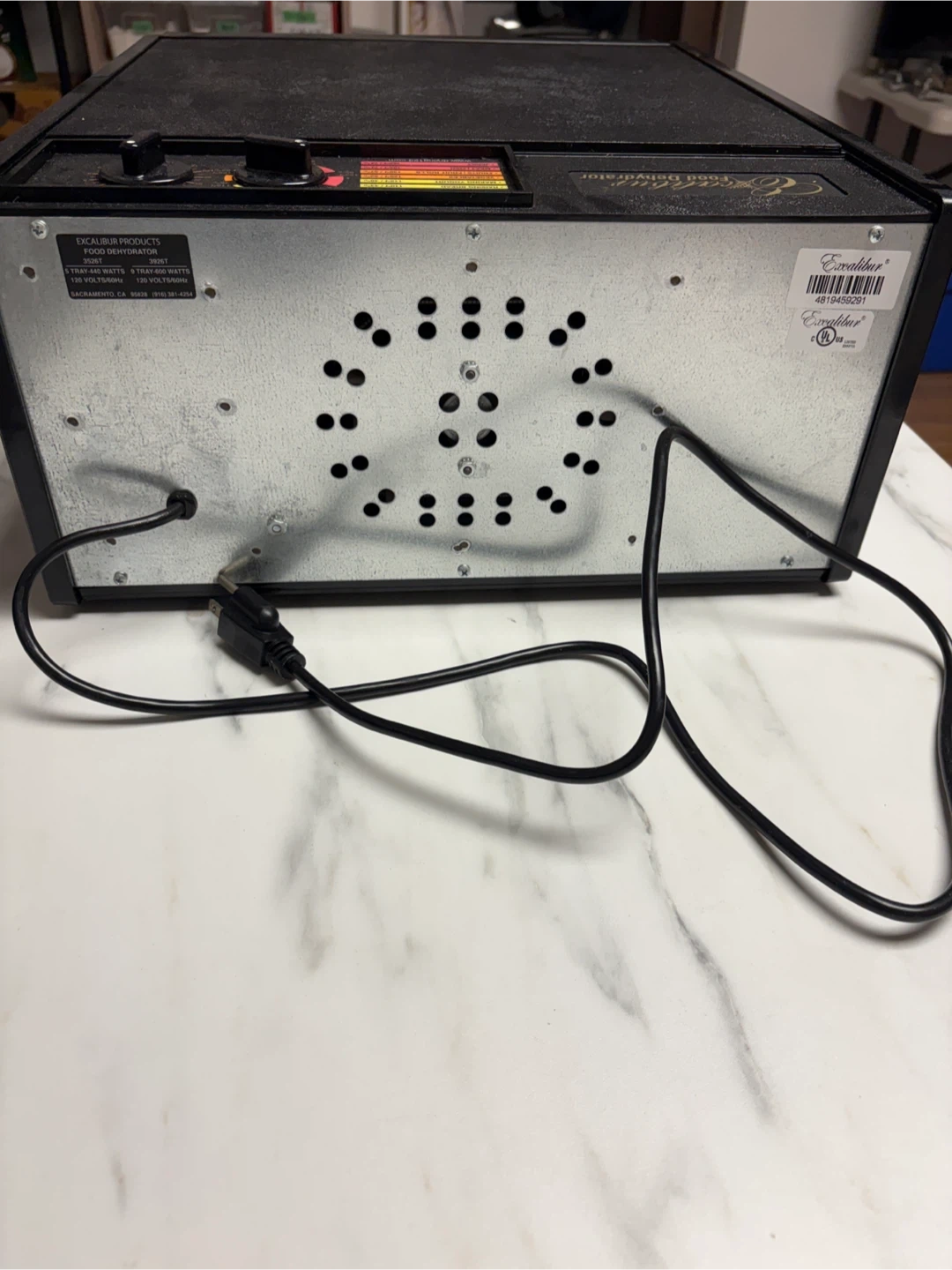 Excalibur 4-tray food dehydrator for sale. It's great for making jerky, dried fruits, and more. Unit is black and runs on 120 volts.