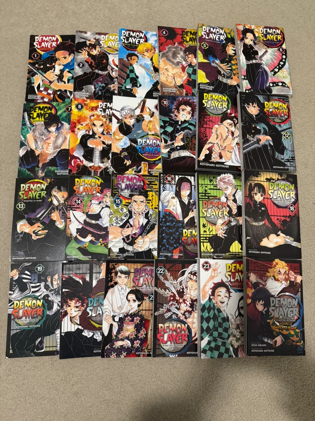 Buy & SellDemon Slayer: Kimetsu no Yaiba Manga Volumes 1-23Demon Slayer: Kimetsu no Yaiba Manga Volumes 1-23$172Demon slayer is a japanese manga by Koyoharu Gotouge. All volumes are in good condition.ConditionGoodWHERE TO MEETChurchView MapSELLERRyanE Clayton100 reviews1 chats·0 favorites·37 viewsSEND CHAT TO SELLERHi Ryan! I’m interested in your listing.Hi Ryan! I’m interested in your listing.Get the Karrot app to chatSign In to chat