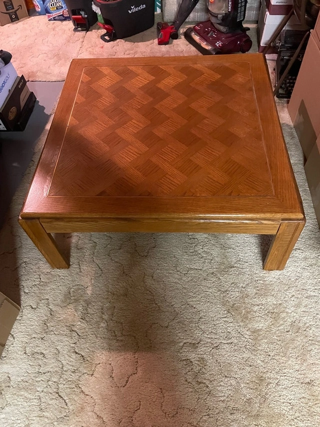 Selling two solid wood coffee tables with paurqa tops. The first table measures 4ft long, 2ft wide, and 15in high. The second table is 3ft x 3ft and 15in high. Both are in excellent condition. Asking $100 for the set. CASH ONLY.