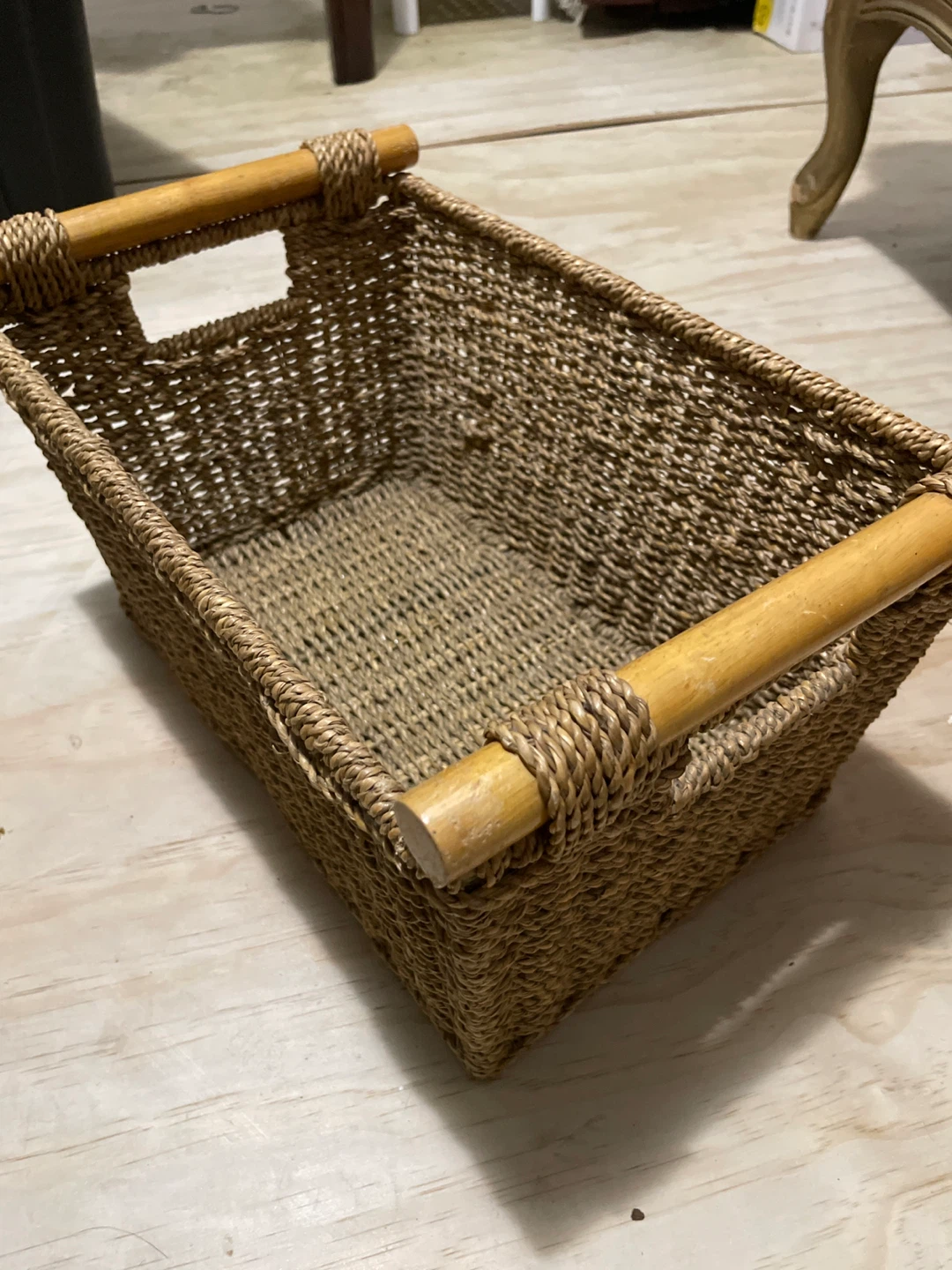 1 / 31 / 3Buy & SellWoven Storage BasketWoven Storage BasketFreeHere's a lovely woven storage basket! It features sturdy wooden handles, making it easy to carry.ConditionGoodWHERE TO MEETCaribooView MapSELLERSparkyMaillardville35247 reviews2 chats·0 favorites·28 viewsSEND CHAT TO SELLERHi Sparky! I’m interested in your listing.Hi Sparky! I’m interested in your listing.Get the Karrot app to chatSign In to chat