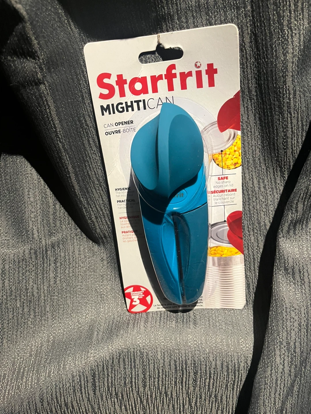 This Starfrit Mightican can opener has no sharp edges on the lid. It's hygienic and safe to use. It's designed for easy handling and cleaning. Great for opening cans quickly!