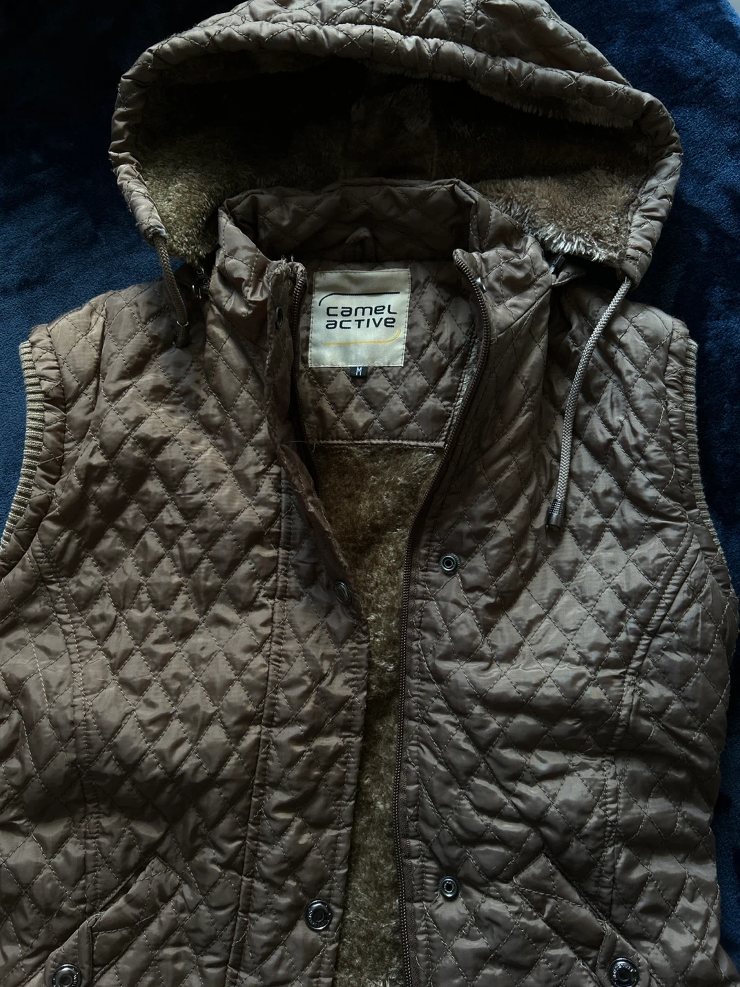 Selling a gently used Camel Active quilted vest, perfect for layering! It's a size M and features a cozy, soft lining. The vest is in great condition and has a stylish, quilted design. It's a great addition to any wardrobe for those cooler days!