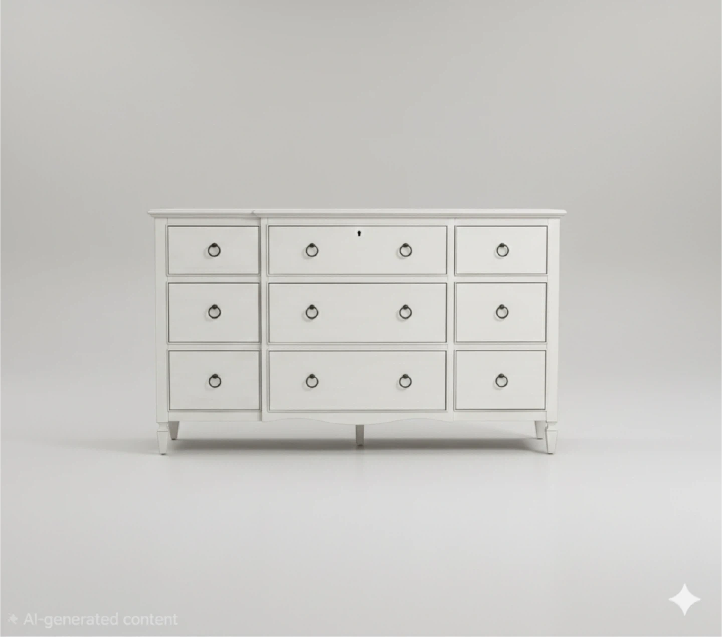 White 9-Drawer Dresser with Ring Pulls