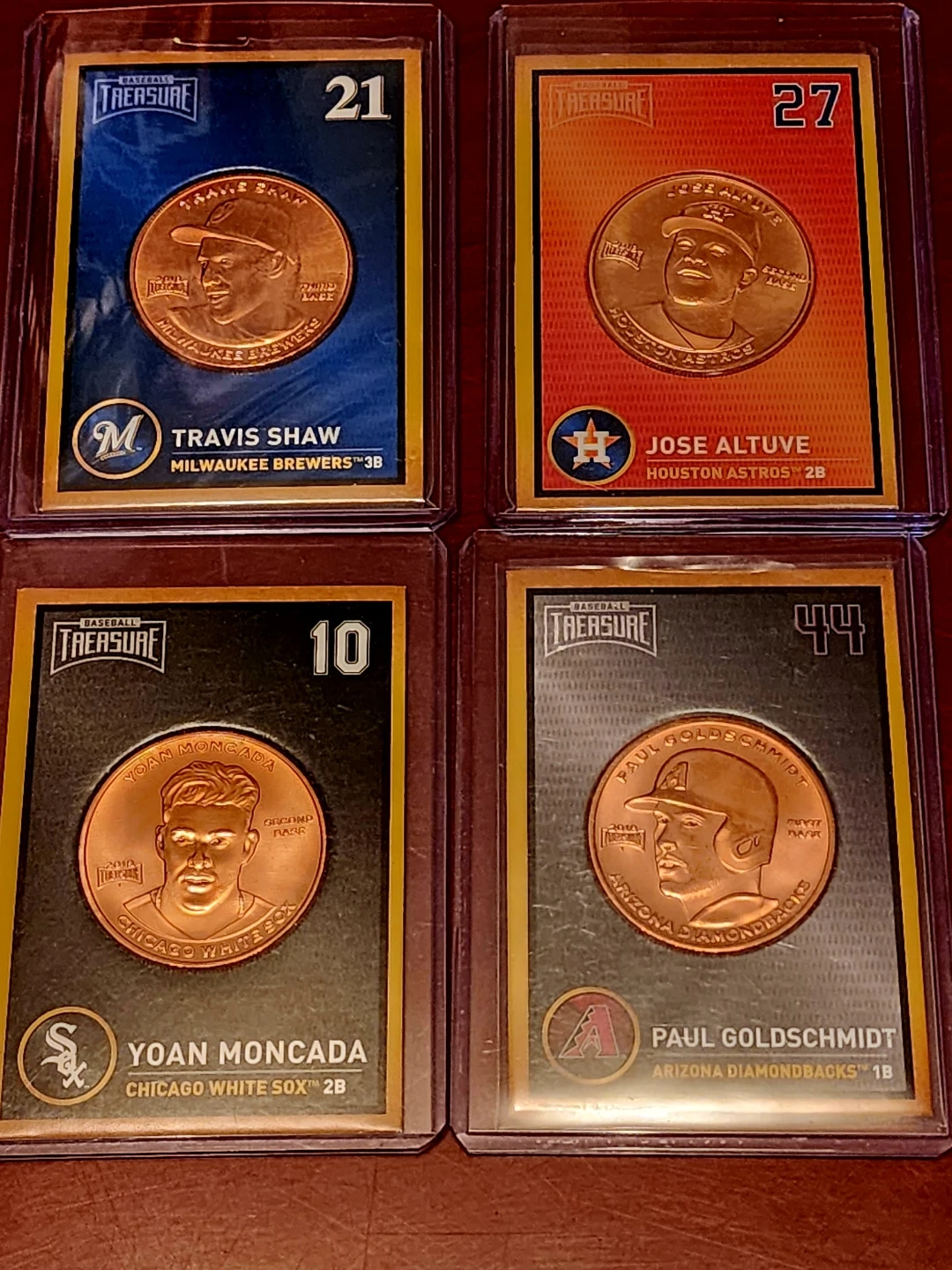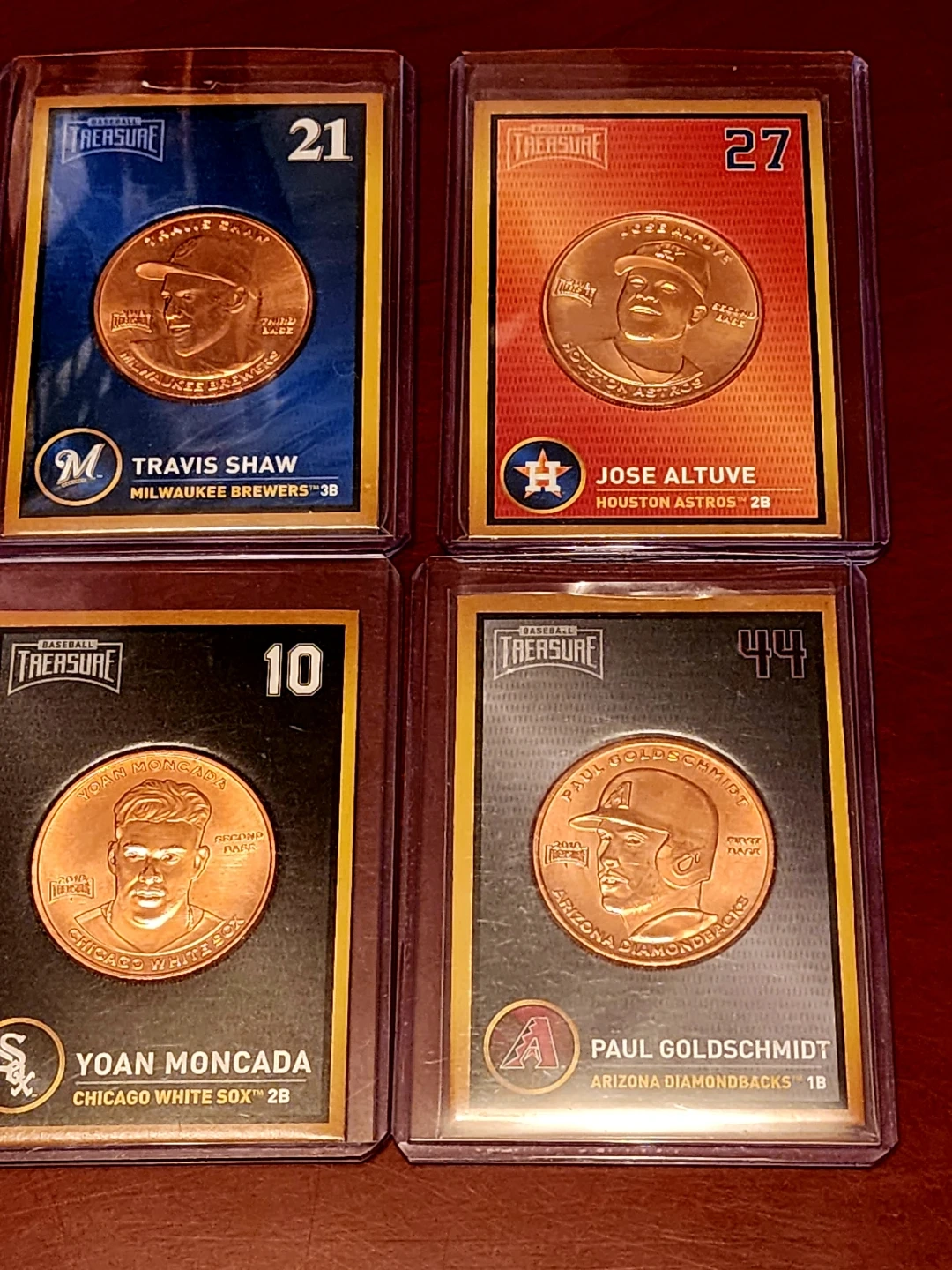 Selling a set of Baseball Treasure coins. Each coin features a different player, including Paul Goldschmidt, Travis Shaw, Jose Altuve, and Yoan Moncada. Great for any baseball fan or collector!