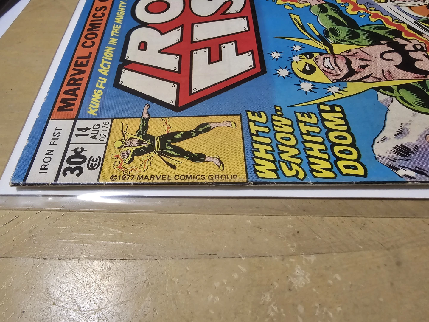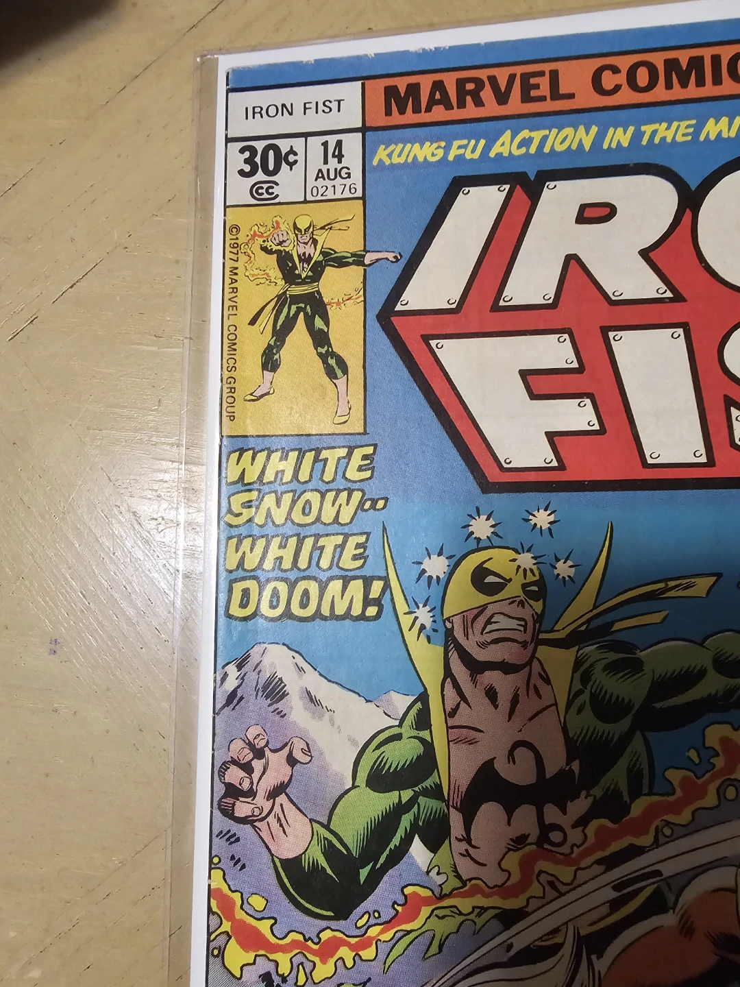 You are looking at a used copy of Marvel Comics Iron Fist #14 from August 1977, featuring the introduction of Sabretooth. This comic book is in fair condition, showing wear and tear typical of its age, as shown in the photos. A great addition to any comic collection.