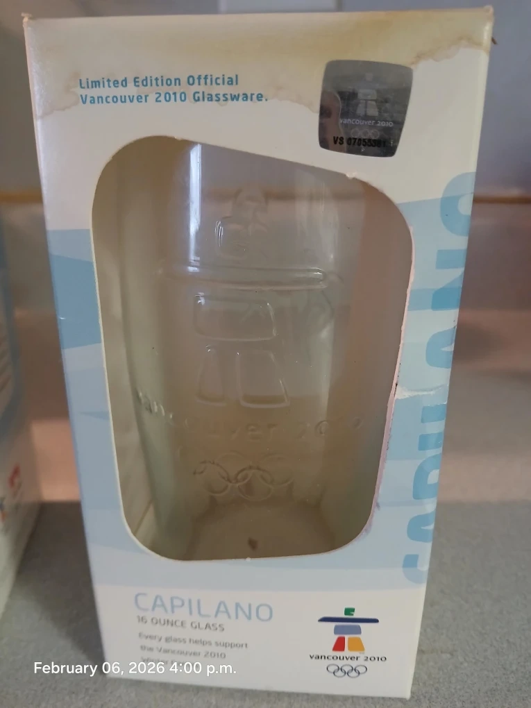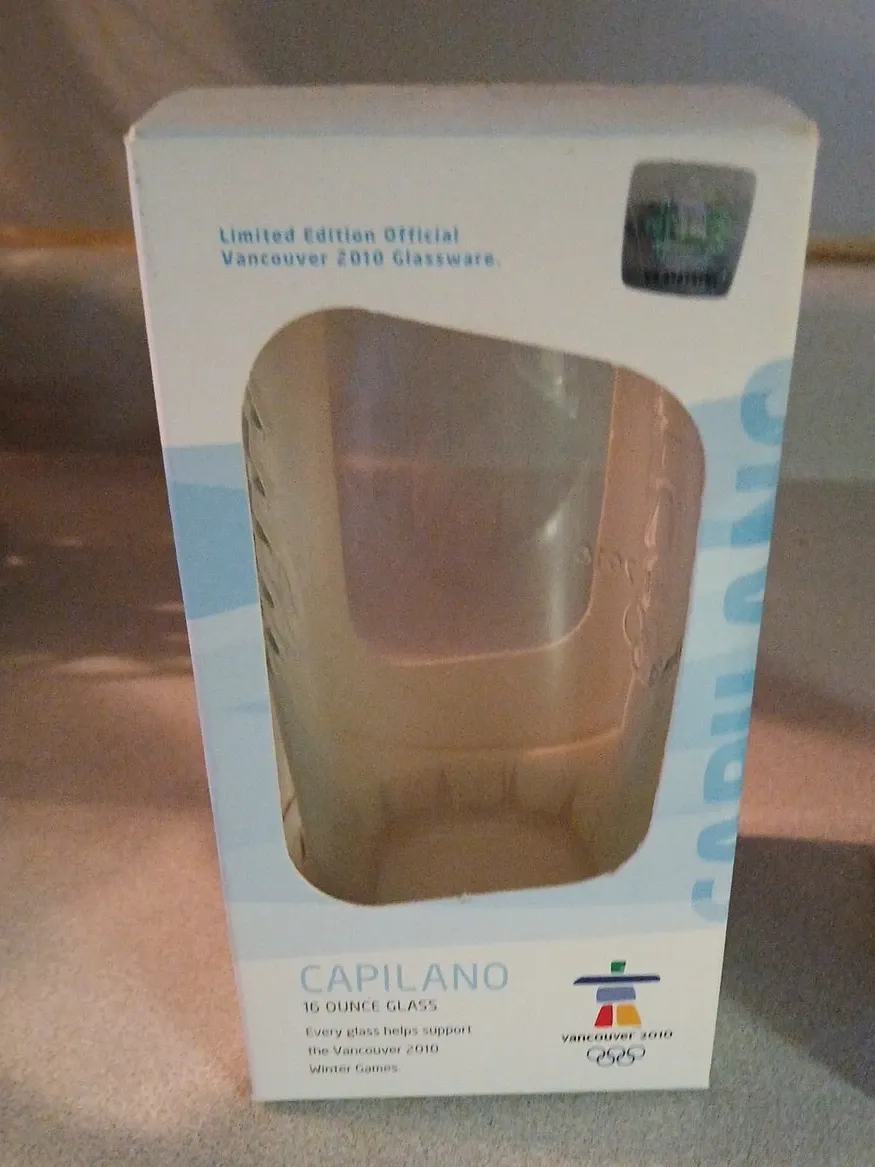 This is a limited edition Capilano 16 ounce glass set of 2 from the Vancouver 2010 Winter Games. It's official glassware and was a national partner item with Petro-Canada. It's made of clear glass.🏆