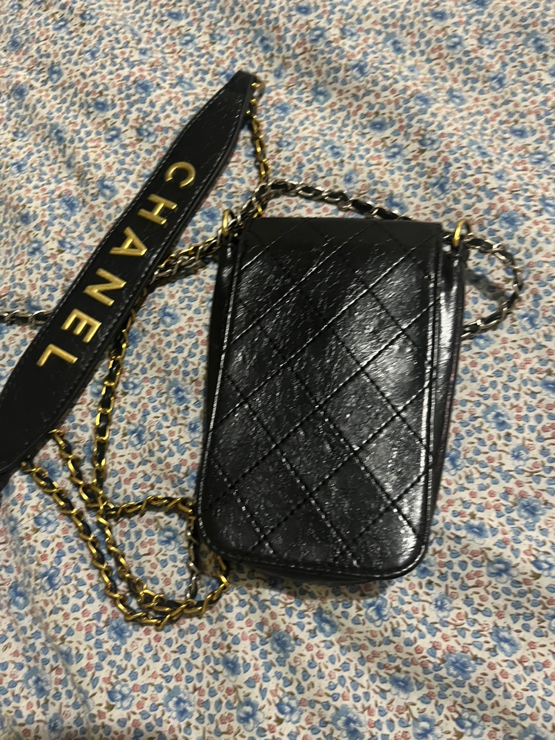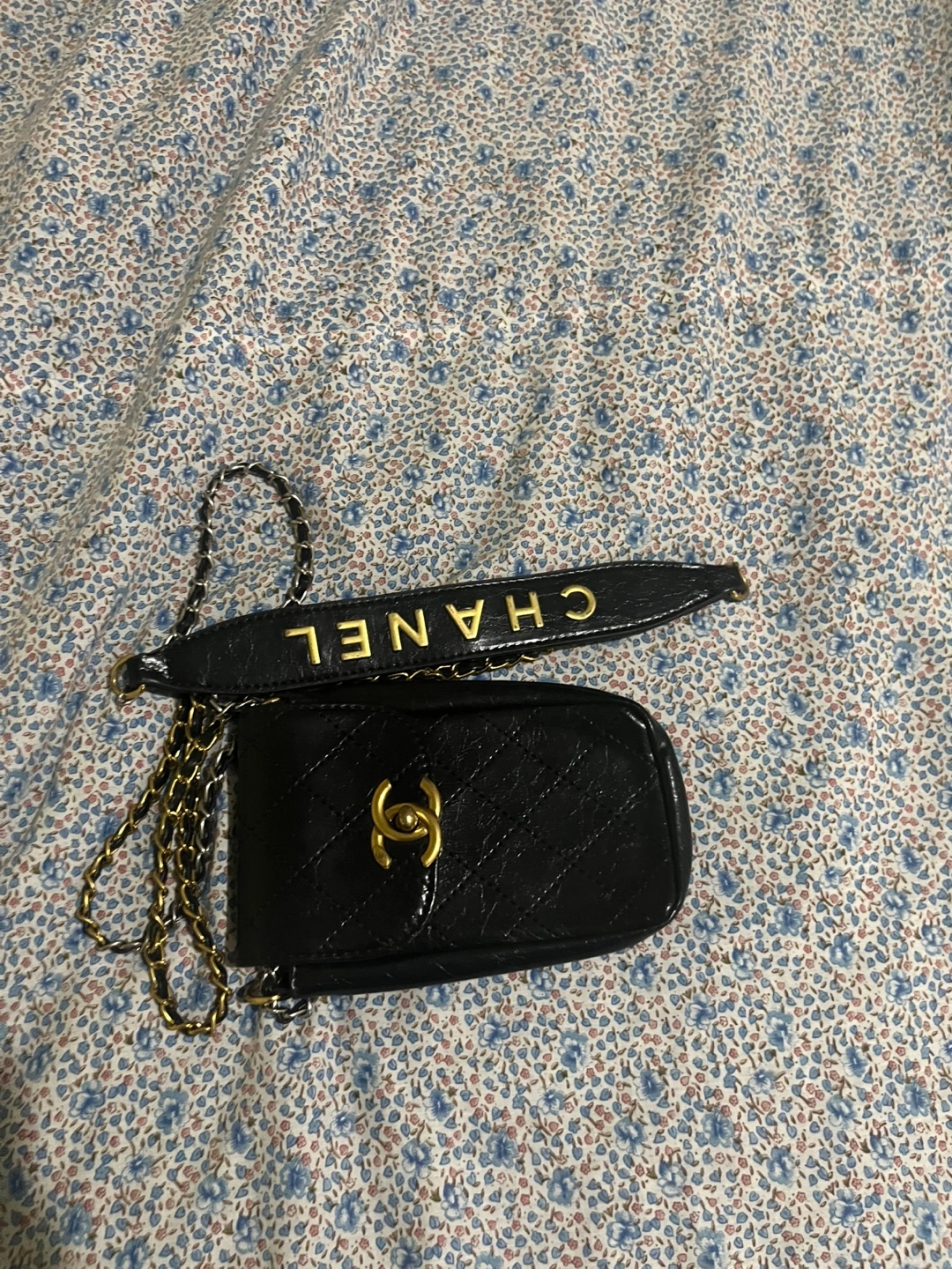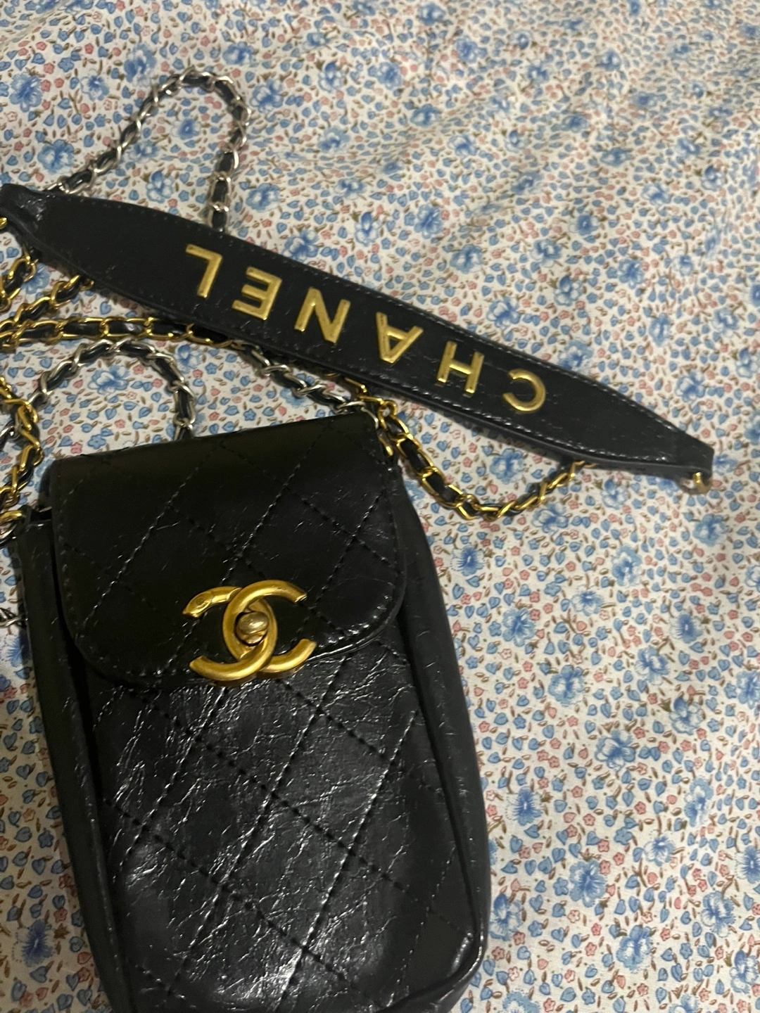 Chanel Black Makeup Bag and smart phone with Chain