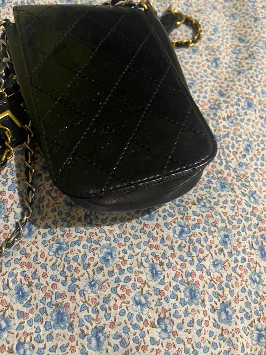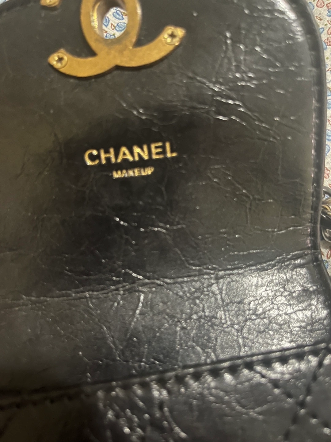 Selling a Chanel black makeup and smart phone bag with a chain. It has the classic Chanel quilting and a gold-tone logo. The chain strap adds a touch of elegance! It's perfect for carrying your essentials in style