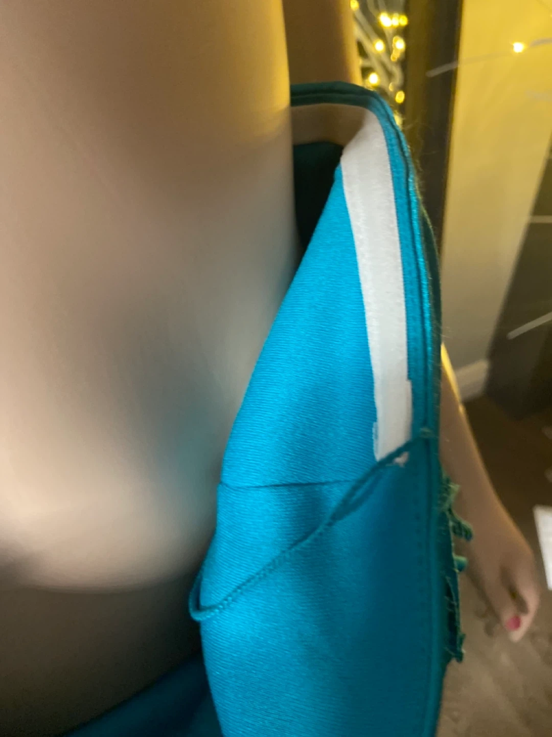 Strapless teal satin dress with flattering ruched bodice and beautiful floral accents. Perfect for a special occasion or a night out!