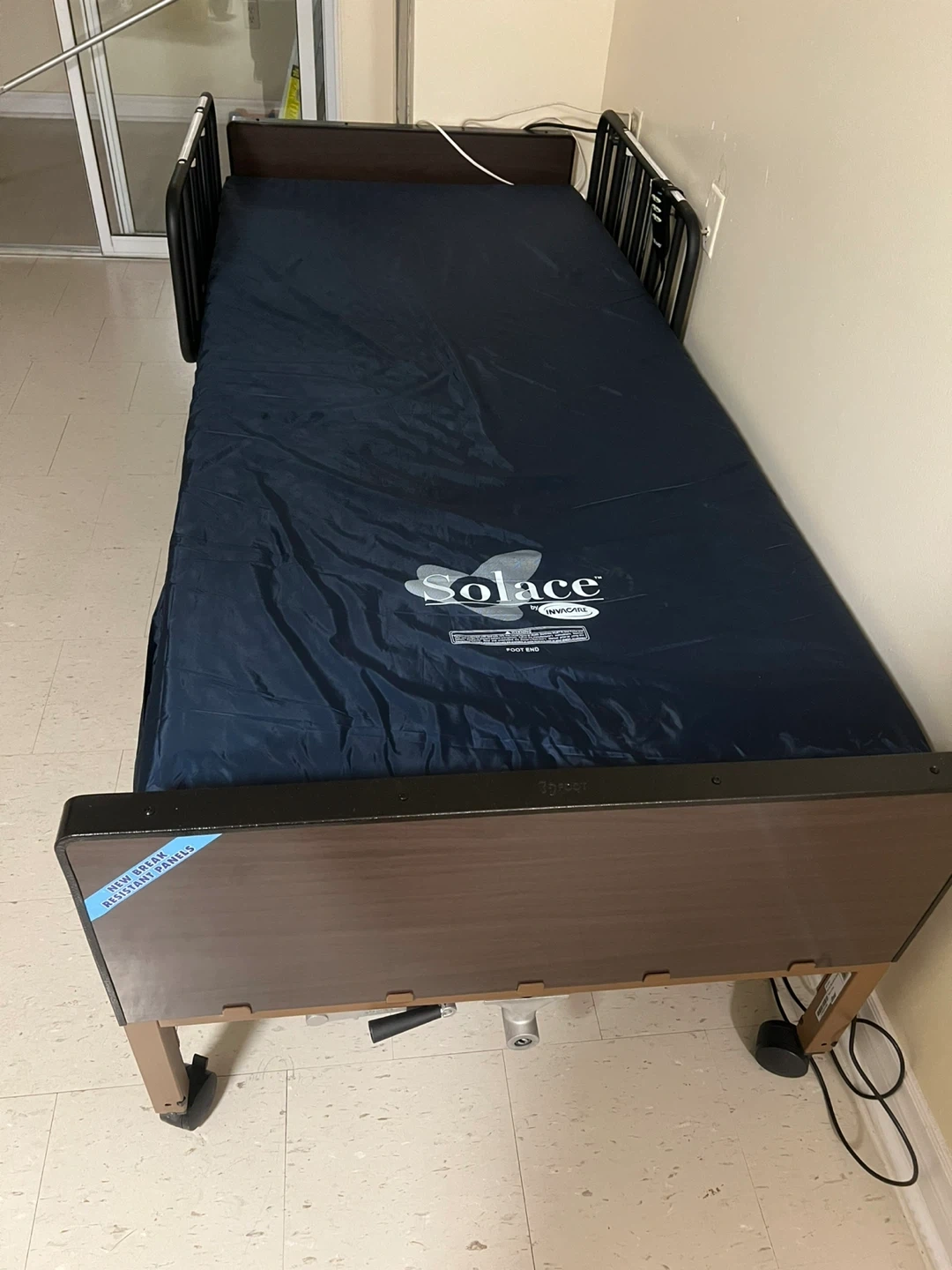 Selling a Solace mattress on a Drive medical bed frame. The bed frame has adjustable settings with a remote control. The mattress appears to be in good condition. Great for home care or assisted living needs BUYIT FOR 2400 have it for a month use only ones