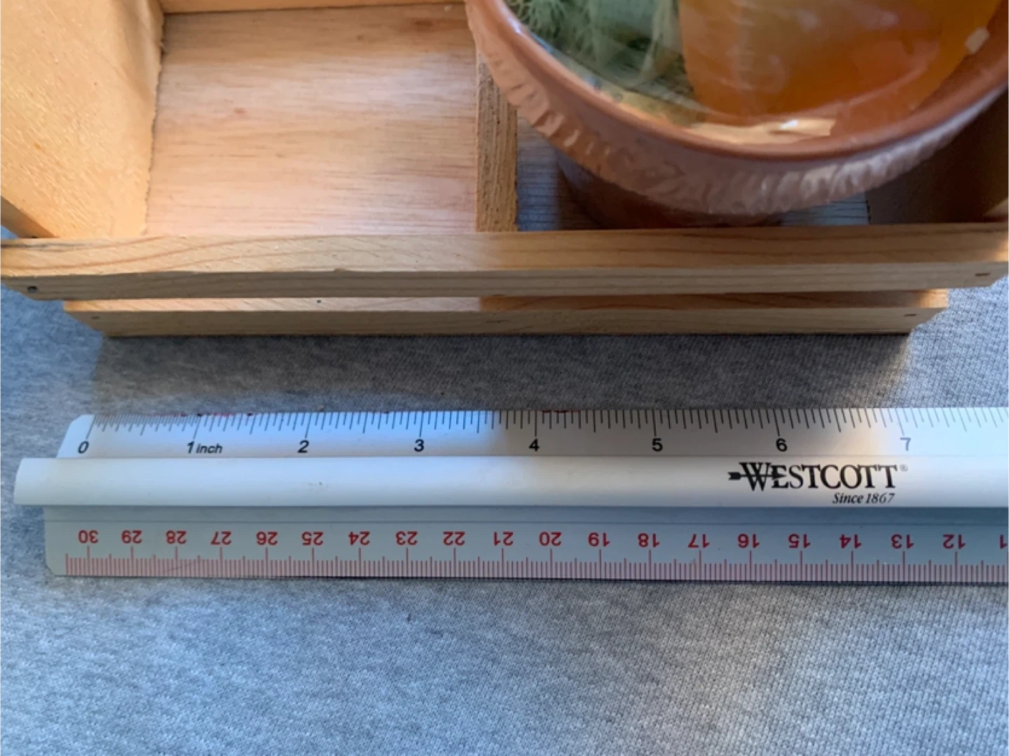Basic Wooden Caddy with Bath items and Small Plant Holder