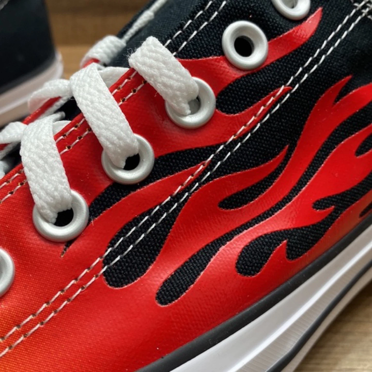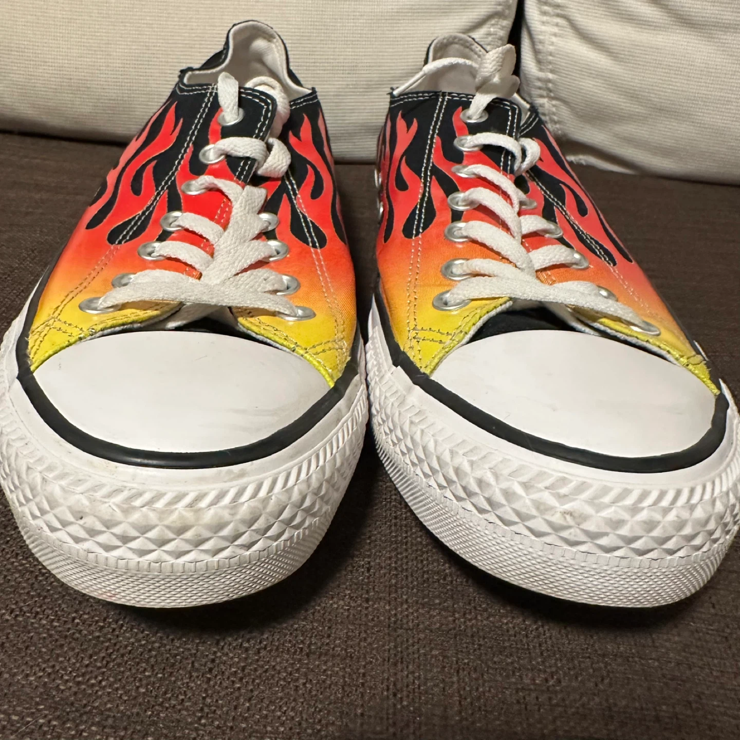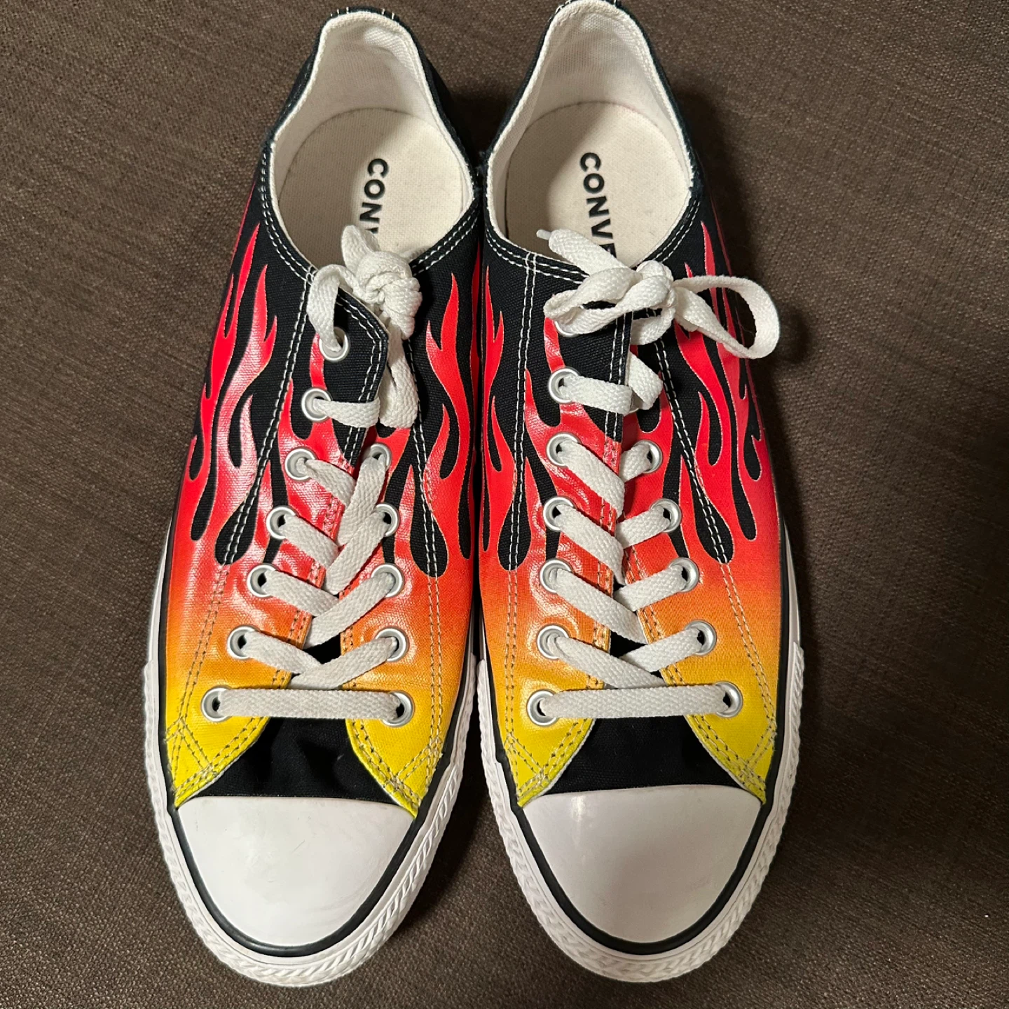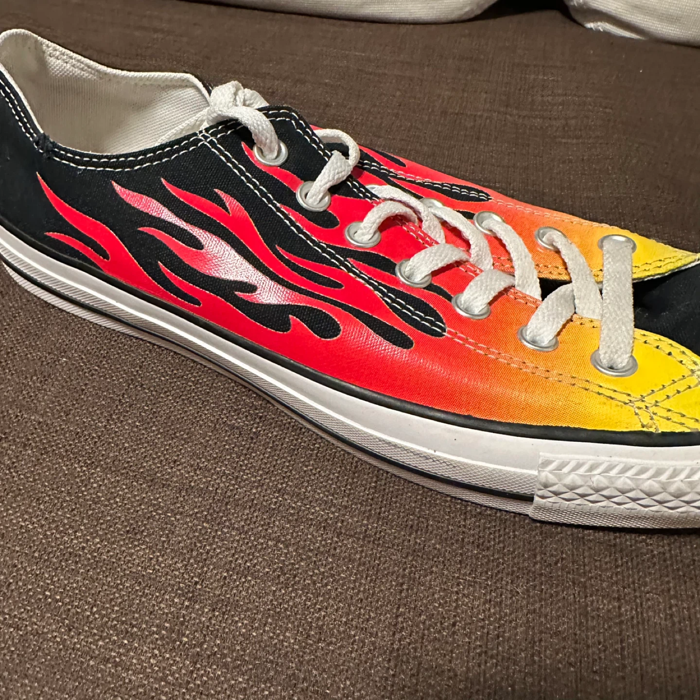 Cool Converse All Star sneakers with a flame design! These are in brand new, never worn and ready for a new home. They're perfect for adding a bit of fire to your step. Men’s Sz 11