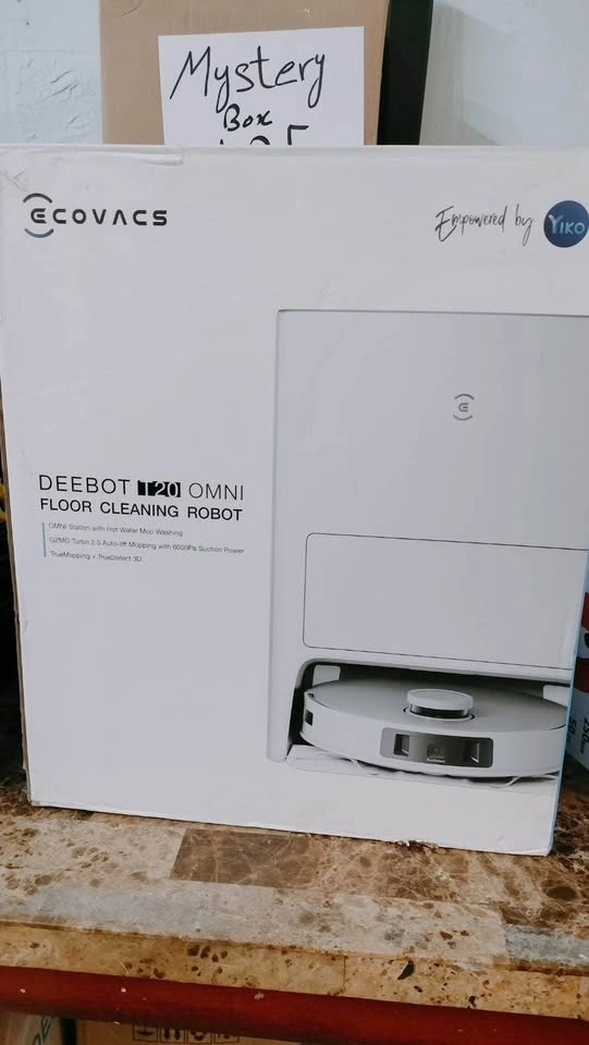 Awesome ECOVACS DEEBOT T20 OMNI robot vacuum. Has OMNI Station with hot water mop washing. Also has OZMO Turbo 2.0 auto-lift mopping and 6000Pa suction power. Features TrueMapping and TrueDetect 3D for smart cleaning.