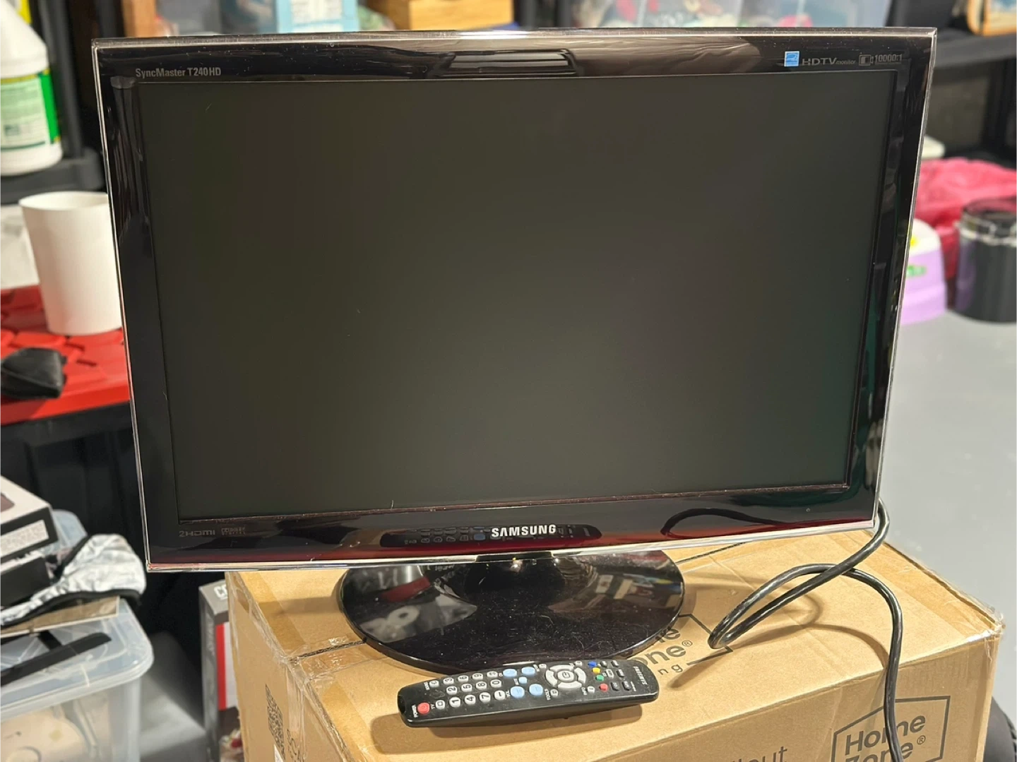 This Samsung SyncMaster T240HD monitor offers a 24-inch display. The monitor is HD compatible. It comes with a remote control.