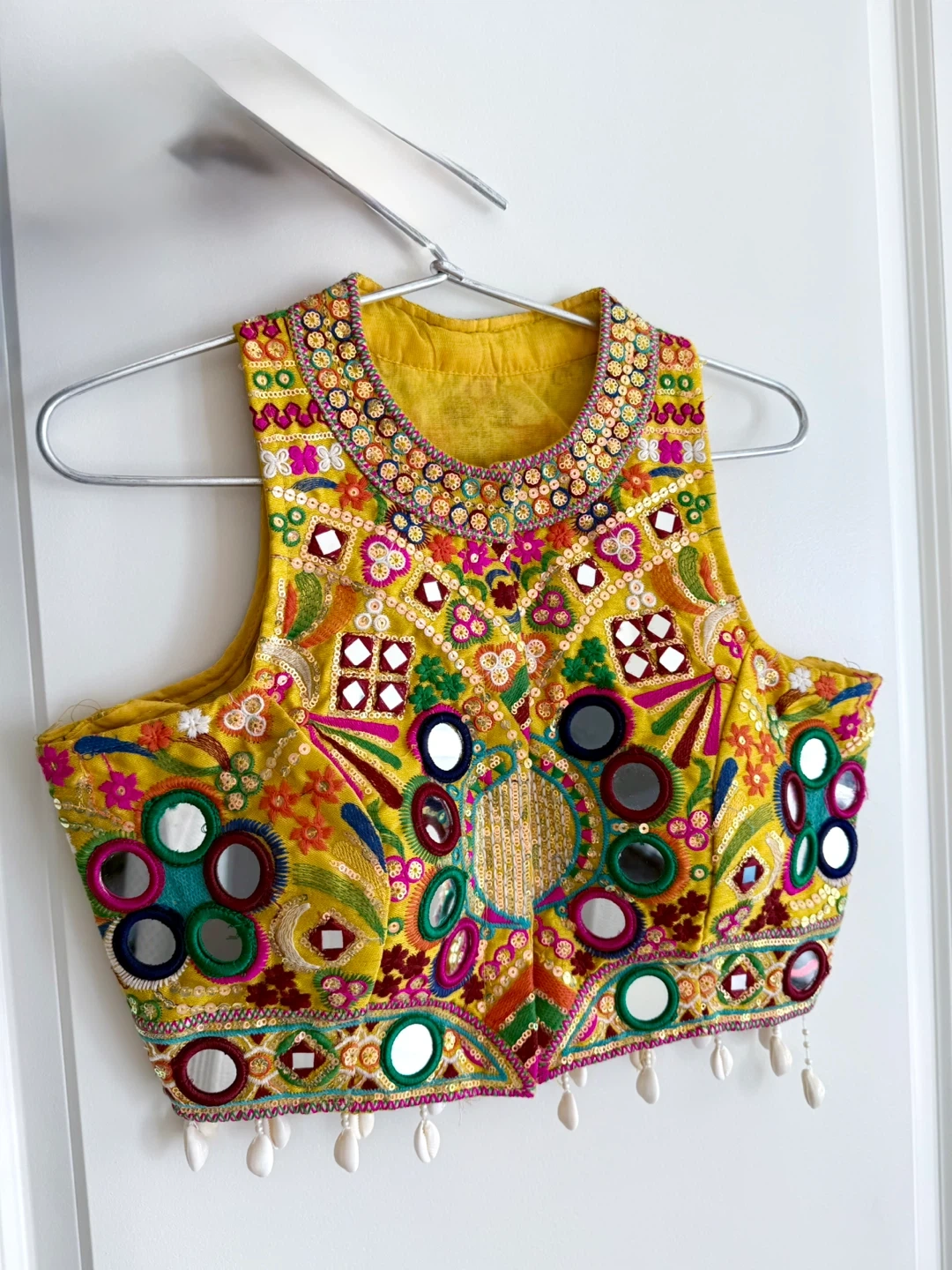 Yellow Embroidered Sleeveless Vest with Mirrors and Shells