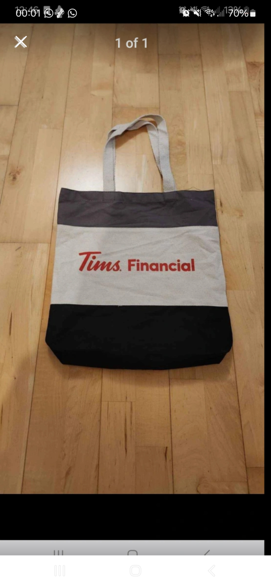Tim Hortons Tims Financial Tote Bag (Brand New)