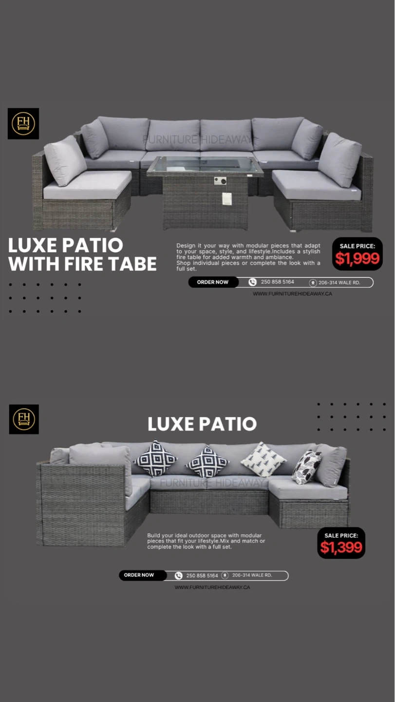 Brand new couches & patio sets at unbeatable prices—only until April 12! Upgrade your living room and outdoor space with affordable, quality furniture built for comfort and style. 📍 Visit our showroom: 206–314 Wale Rd 💬 Come see it, try it, and take it home #FurnitureSale #WeekendDeals #VictoriaBC #AffordableFurniture #PatioSet #LivingRoomUpgrade