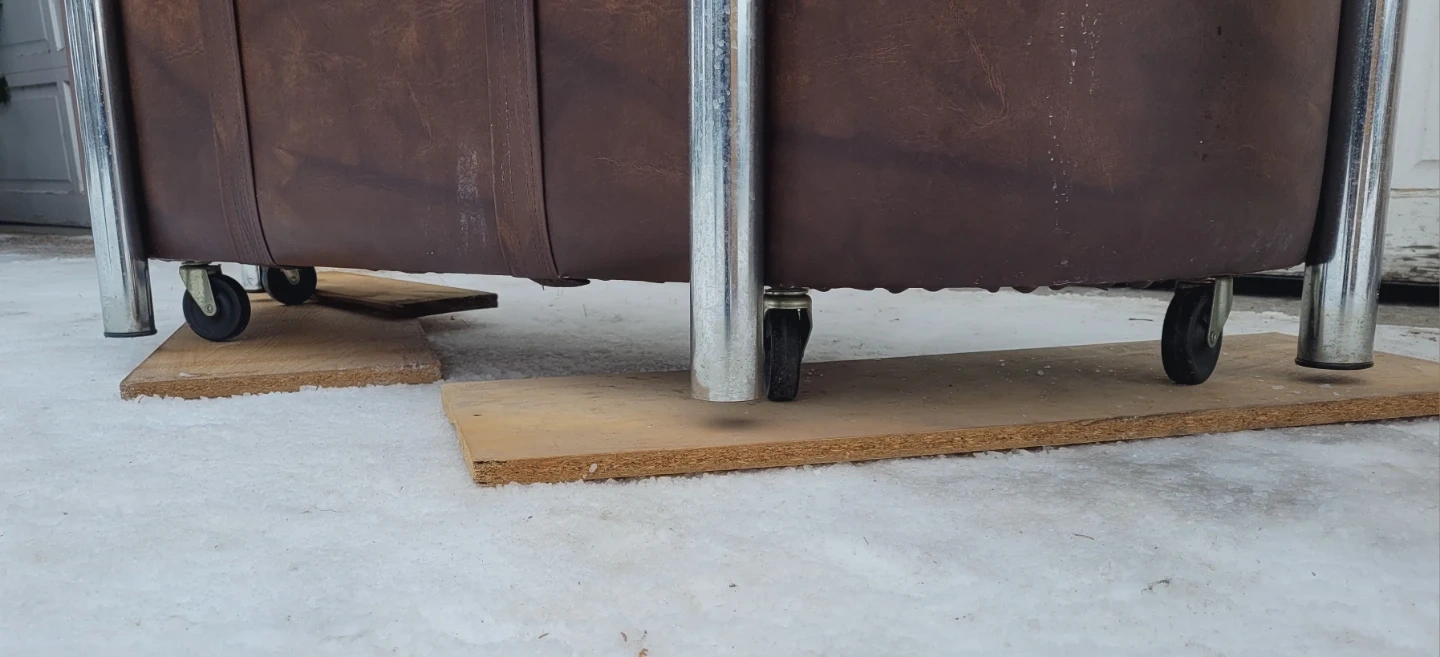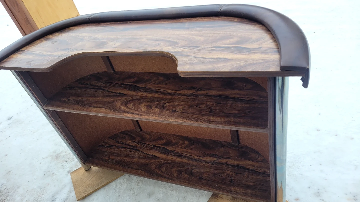 Vintage leather and chrome rolling bar. Easy to move around. Has 3 shelves, great for parties and events!