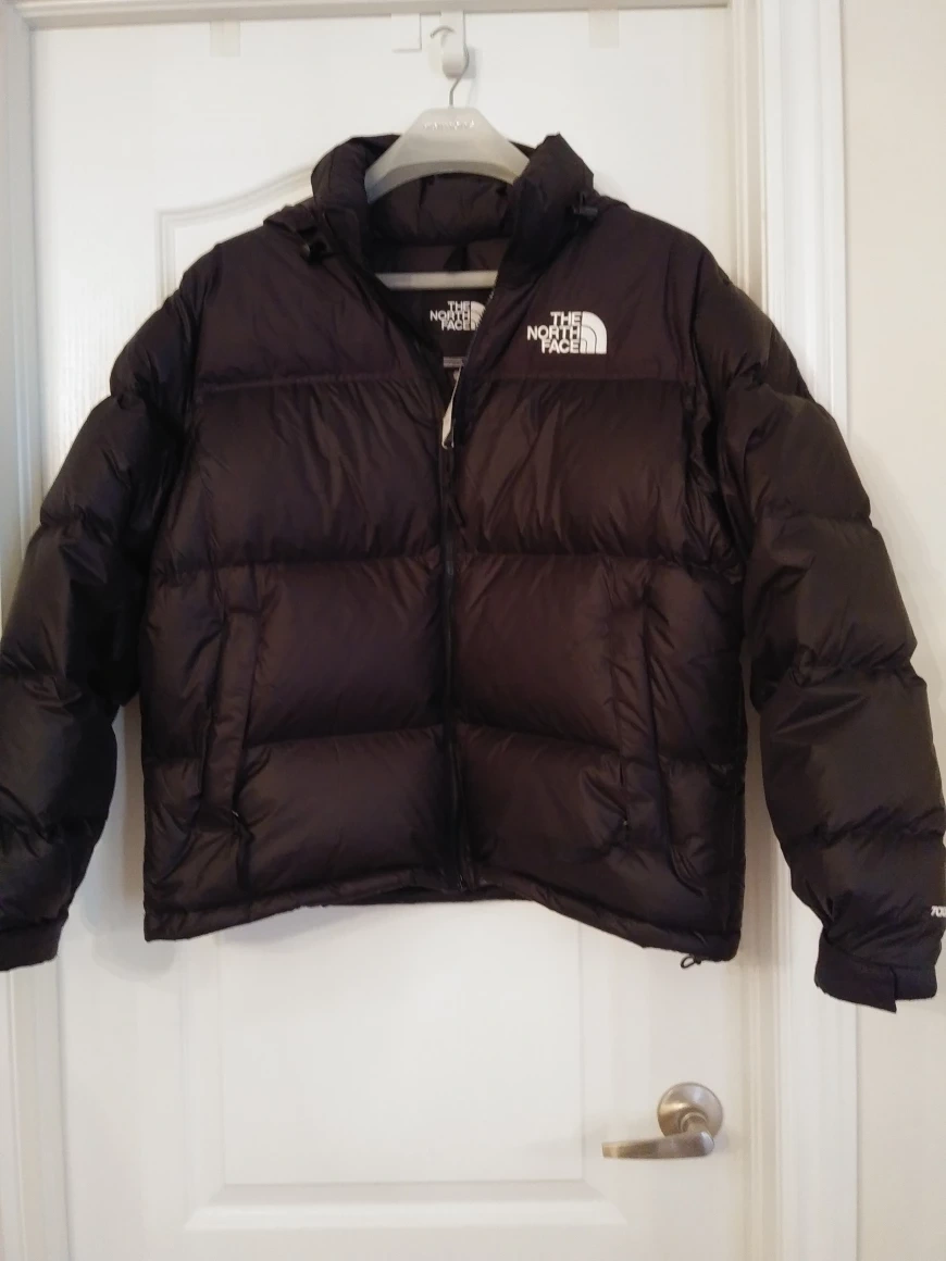 Black puffer jacket with a hood. Size G/L (BRAND NEW) NEVER WORN