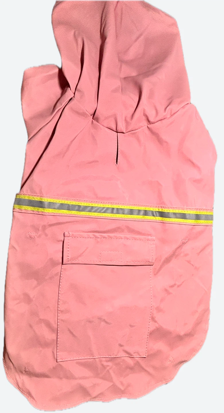 Selling a cute pink dog raincoat! It has a hood and a reflective strip for safety. Perfect for keeping your furry friend dry on those rainy walks
