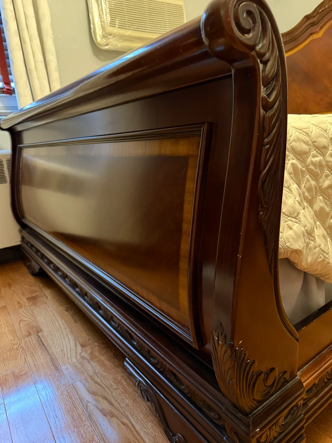 Elegant dark wood queen size bed frame