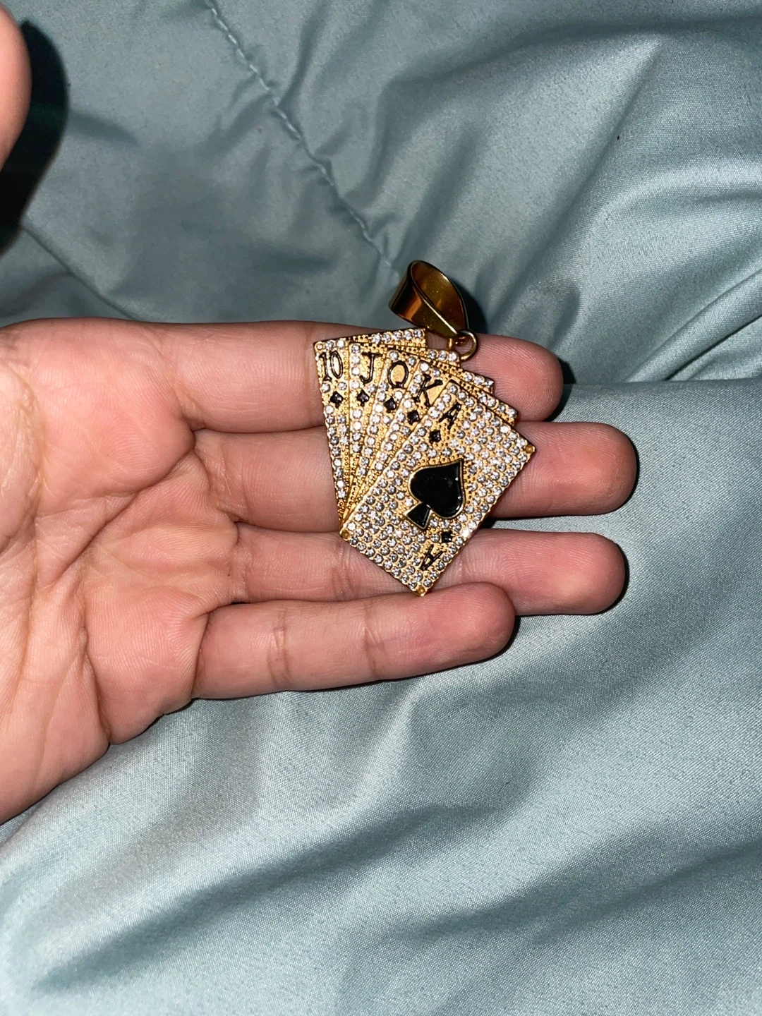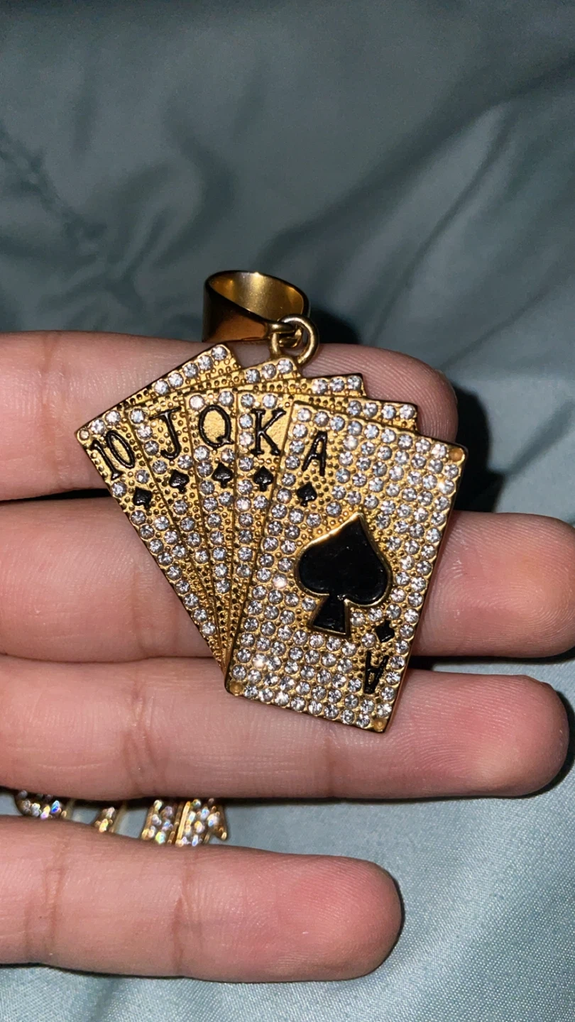 Buy & SellGold Playing Card PendantGold Playing Card Pendant$50Selling a unique gold pendant featuring a hand of playing cards! It's a really eye-catching piece.ConditionNewWHERE TO MEETCheck LocationView MapSELLERAliLarge Crescent90 reviews1 chats·0 favorites·22 viewsSEND CHAT TO SELLERHi Ali! I’m interested in your listing.Hi Ali! I’m interested in your listing.Get the Karrot app to chatSign In to chat