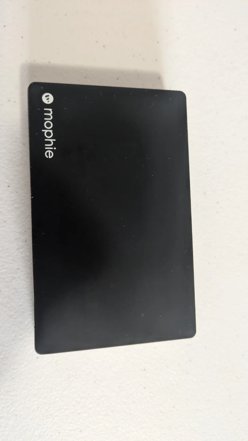 This is a Mophie Powerstation XL portable charger. It has dual USB-A ports and one USB-C port. The unit features a black finish and silver metal trim.