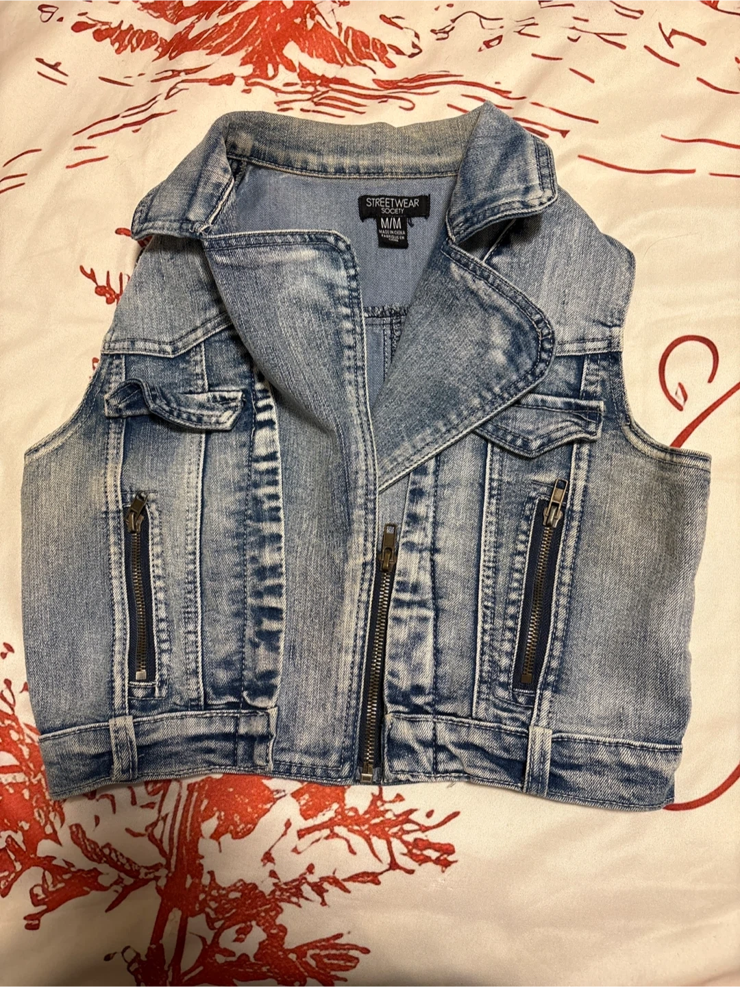 Selling a denim vest from Streetwear Society in a size medium. It's in great condition and ready for a new home!
