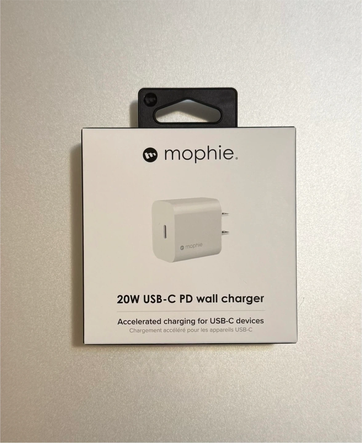 Selling a brand new Mophie 20W USB-C PD wall charger! This charger provides accelerated charging for USB-C devices. Perfect for keeping your devices powered up quickly and efficiently