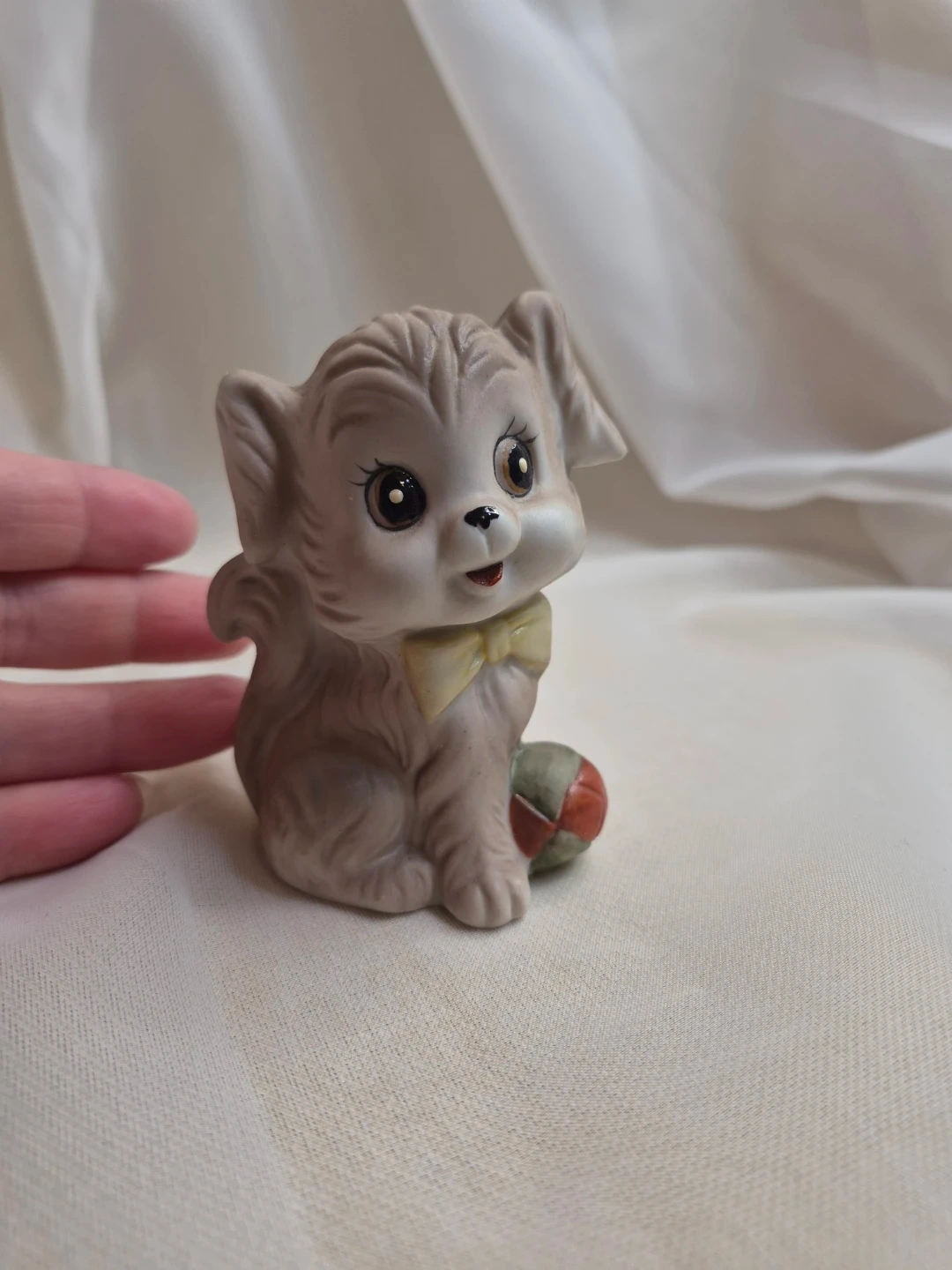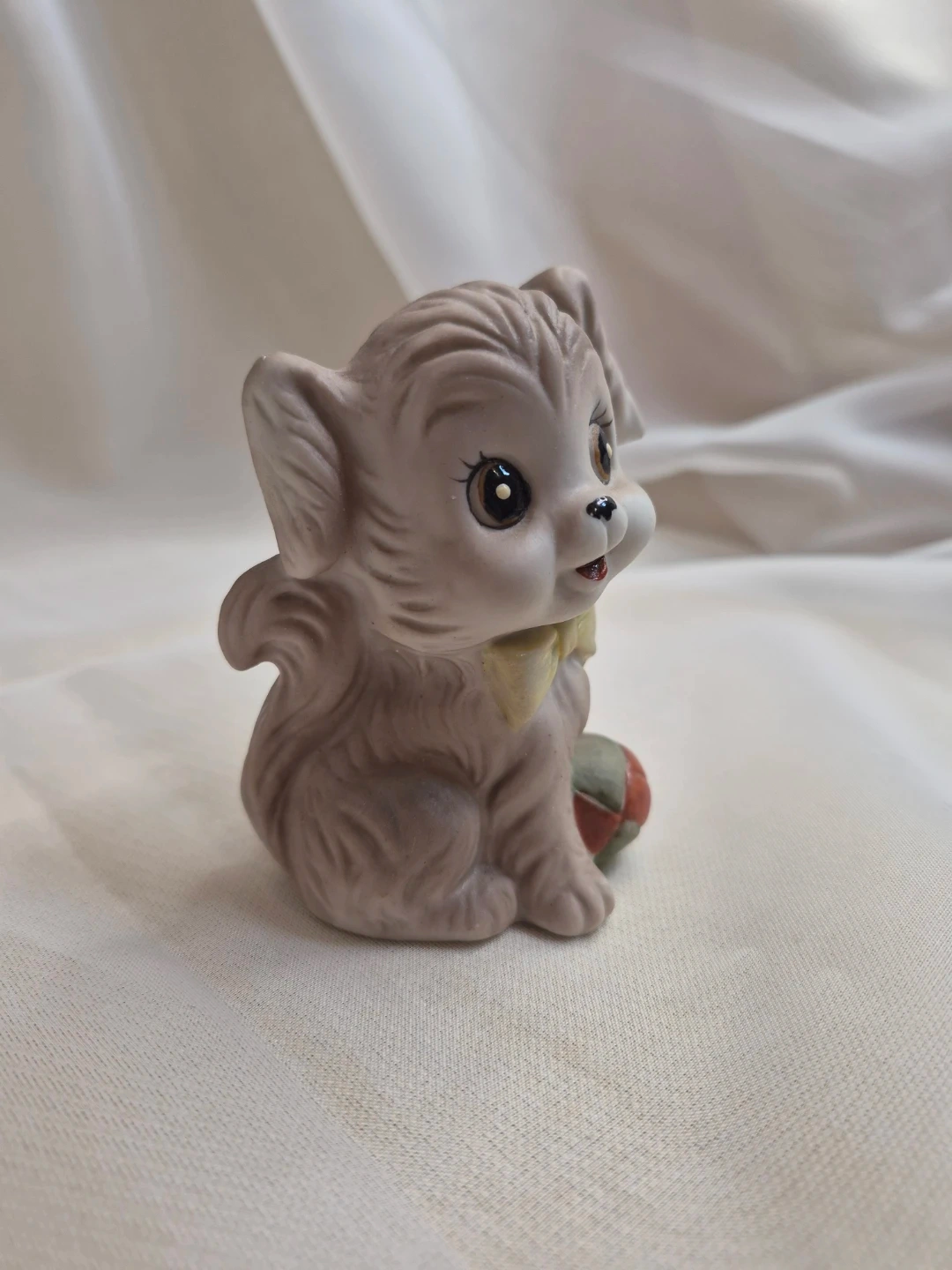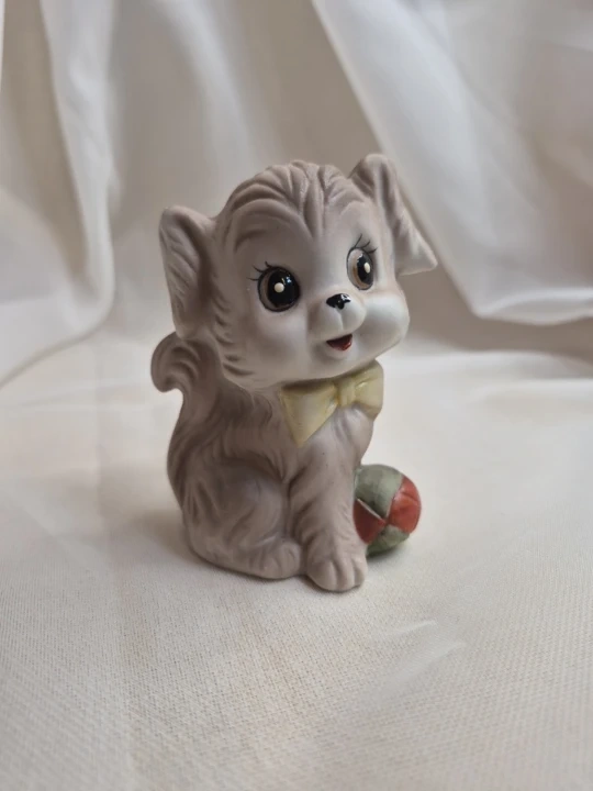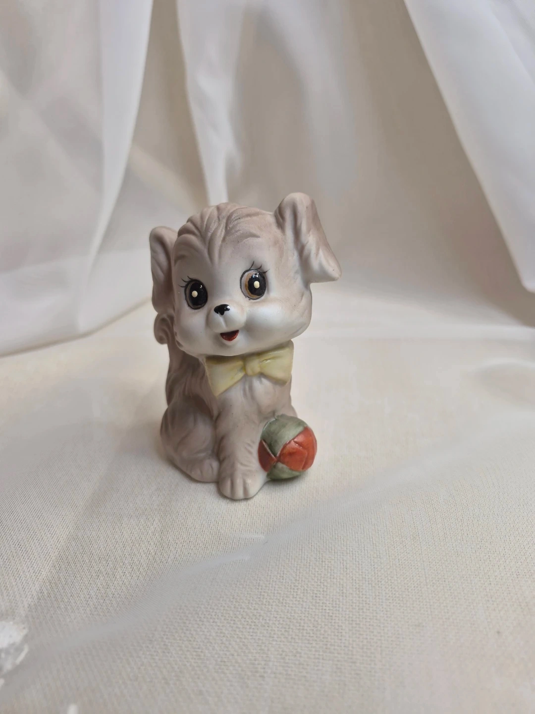 So Cute 3 1/2" Vintage Porcelain Puppy w/ Ball Figurine Excellent Condition please see all pictures