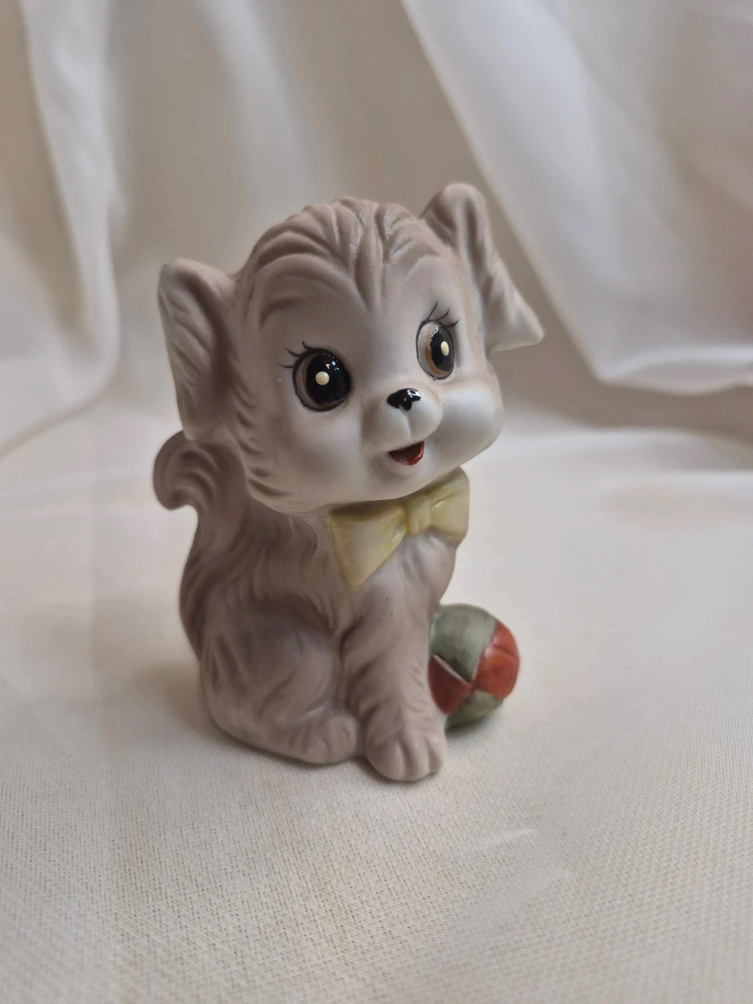 So Cute 3 1/2" Vintage Porcelain Puppy w/ Ball Figurine Excellent Condition please see all pictures