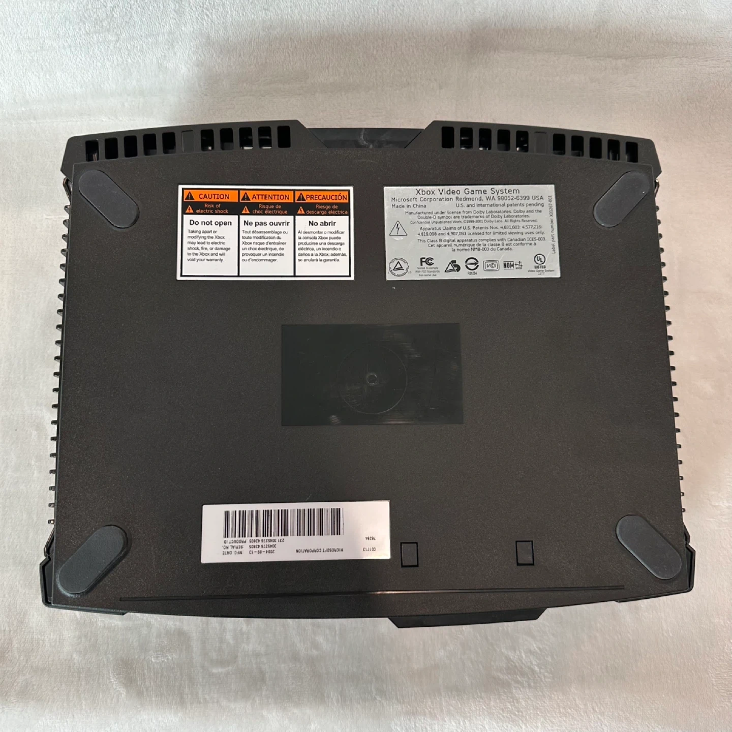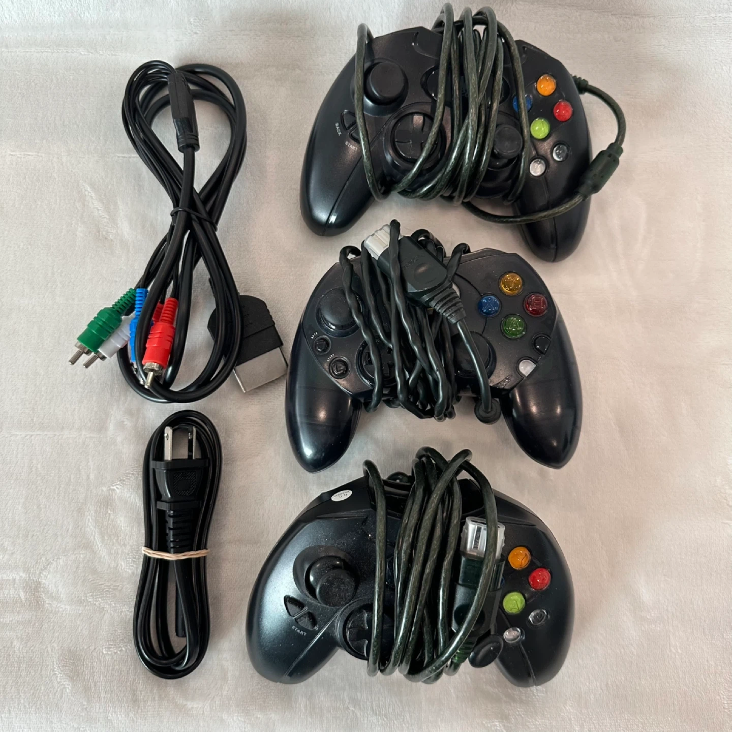 Original Xbox console. Sometimes the disc eject/insert gets stuck and needs a nudge. Power cord is a replacement (not pictured). Comes with 3 controllers; on one, the joystick is broken, but the other two are good. Games are in good condition.