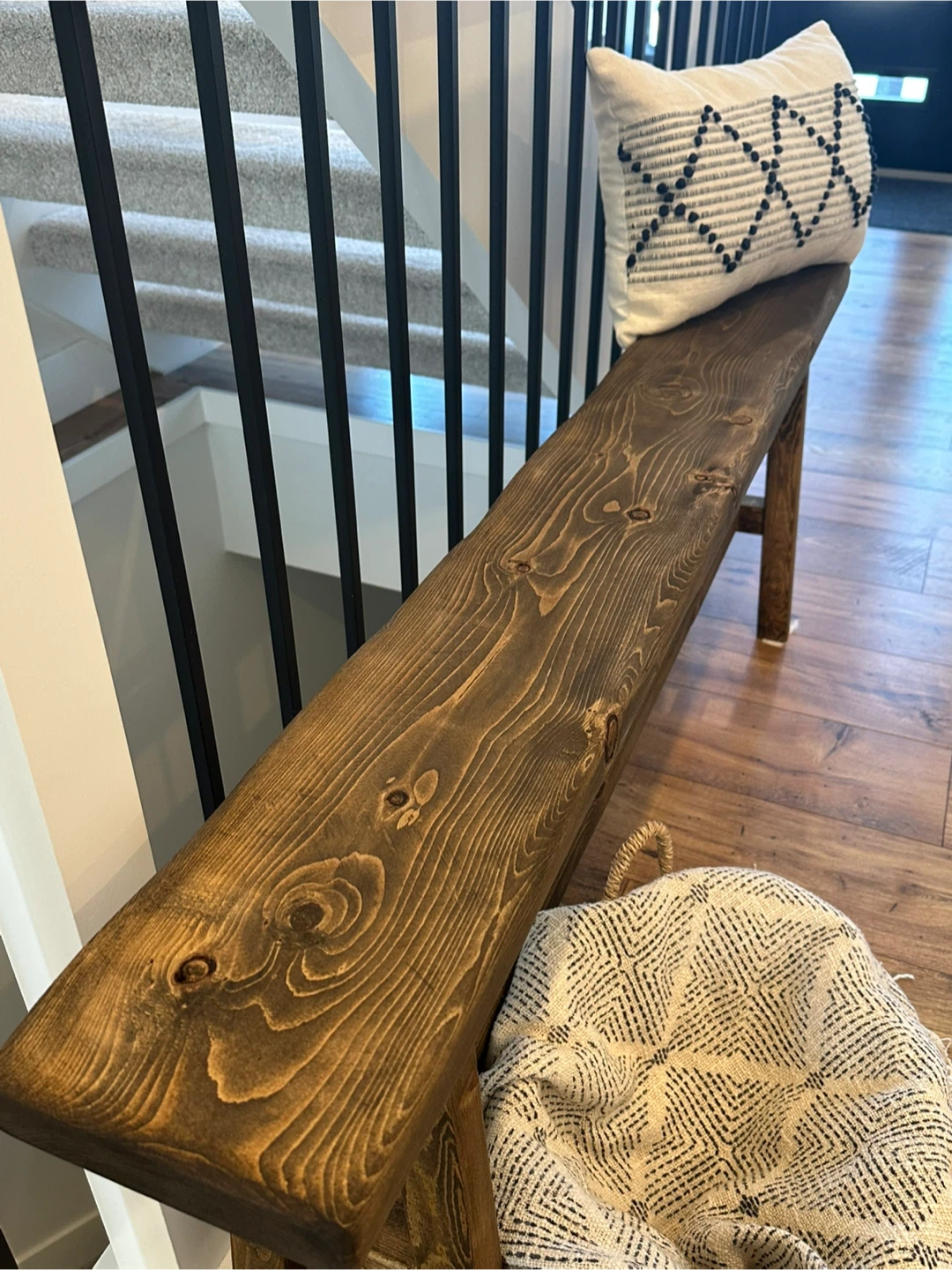 Add a touch of rustic charm to your home with a beautiful custom skinny farmhouse bench! Perfect for entryways, mudrooms, dining tables, hallways, or at the foot of a bed.