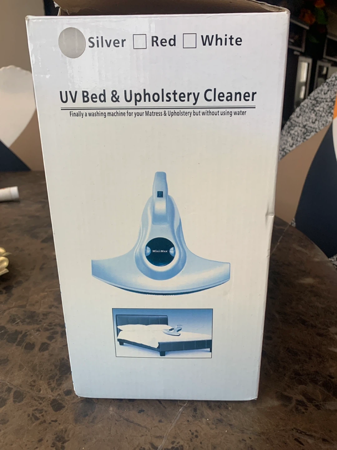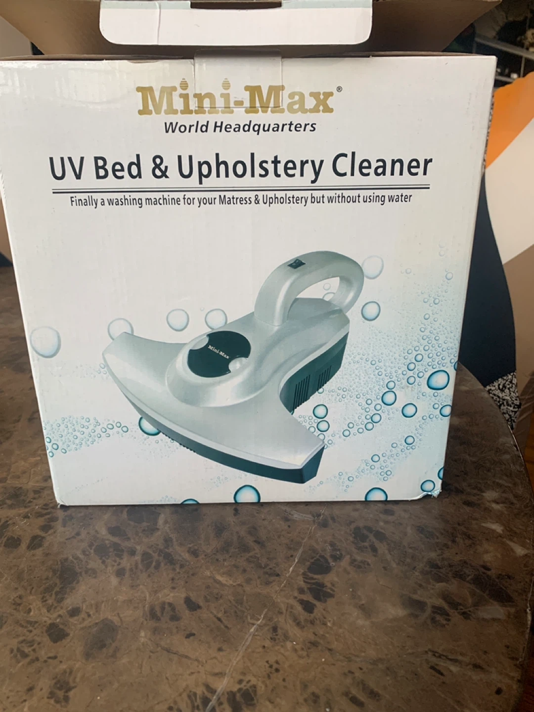 This UV Bed & Upholstery Cleaner helps remove dust and dust mites. It features a vibrating beater bar, UV light, and a vacuum intake. This device is designed to clean mattresses and upholstery without using water.