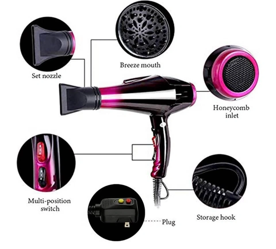 2 SPEEDS, 3 HEAT SETTINGS: The Professional Hair Dryer features two speeds (off-low-high) and three heat settings (cool/warm/hot) to offer control and professional styling versatility for all hair types. Blow Dryer with Negative Ion and Far Infared function, is good for your hair and your healthy.