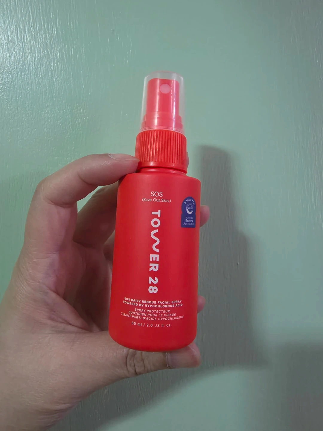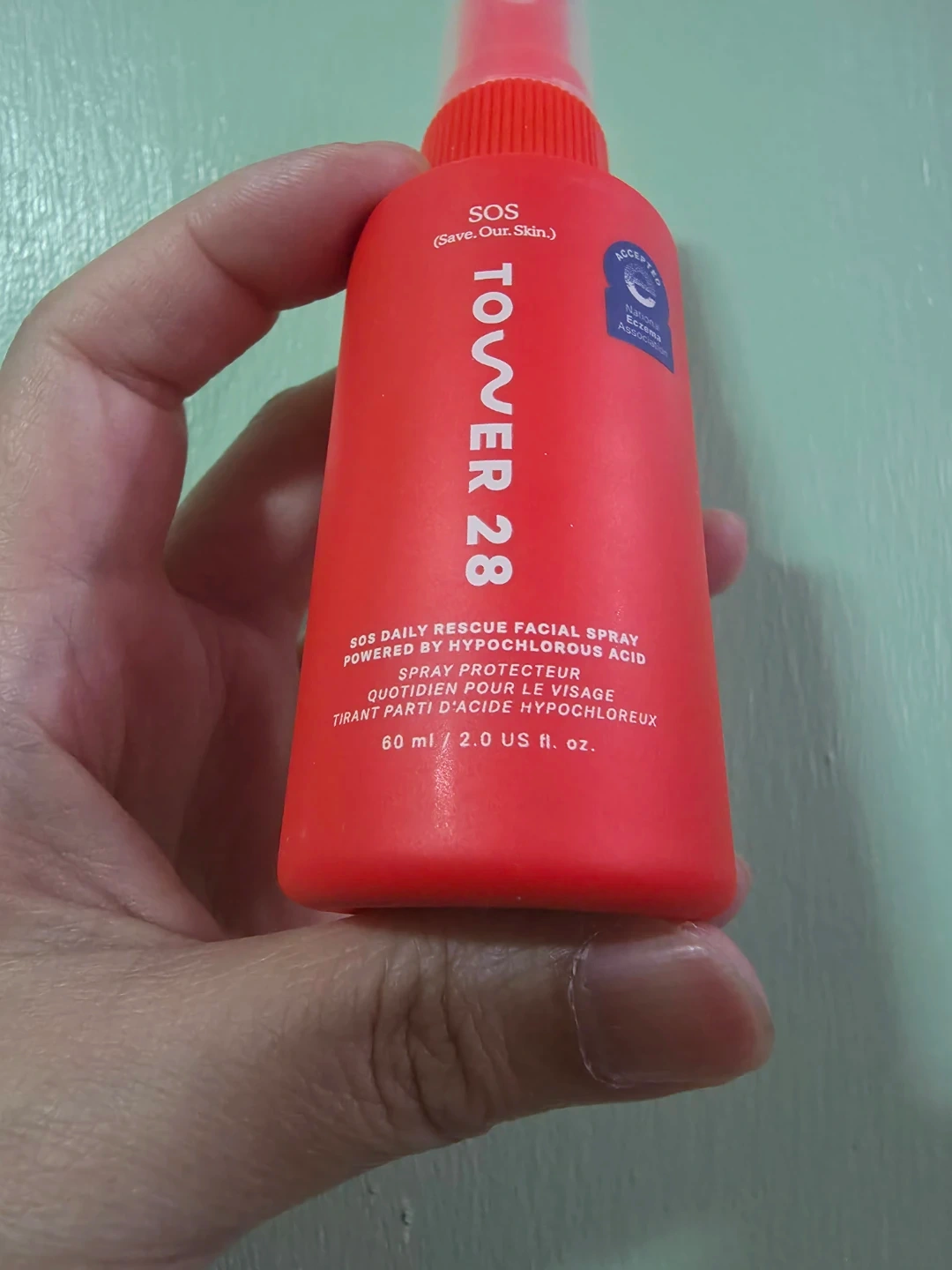NEW Tower 28 SOS Daily Rescue Facial Spray. It's powered by hypochlorous acid and is non-irritating and derm-approved. Soothes stressed out skin and reduces redness. The formula is pH balanced and comes in a 60 ml / 2.0 US fl. oz. bottle.
