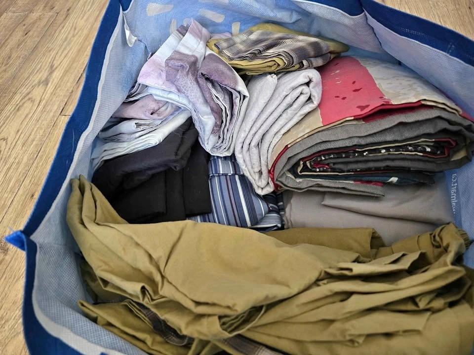 All in great shape, just been stored away and no longer needed. Includes a Queen size green set (fitted, flat & 2 pillowcases), and a single size blue striped set (fitted and flat). Also comes with 6 back pillowcases (4 basic, 2 decorative), 1 white standard pillowcase, and 2 spotted king sized pillowcases. There's also a 'mess mat' that's basically brand new, used only as protection. Lastly, a queen size duvet cover featuring an American flag on one side and the New York skyline on the other. Everything in the bag for $5.